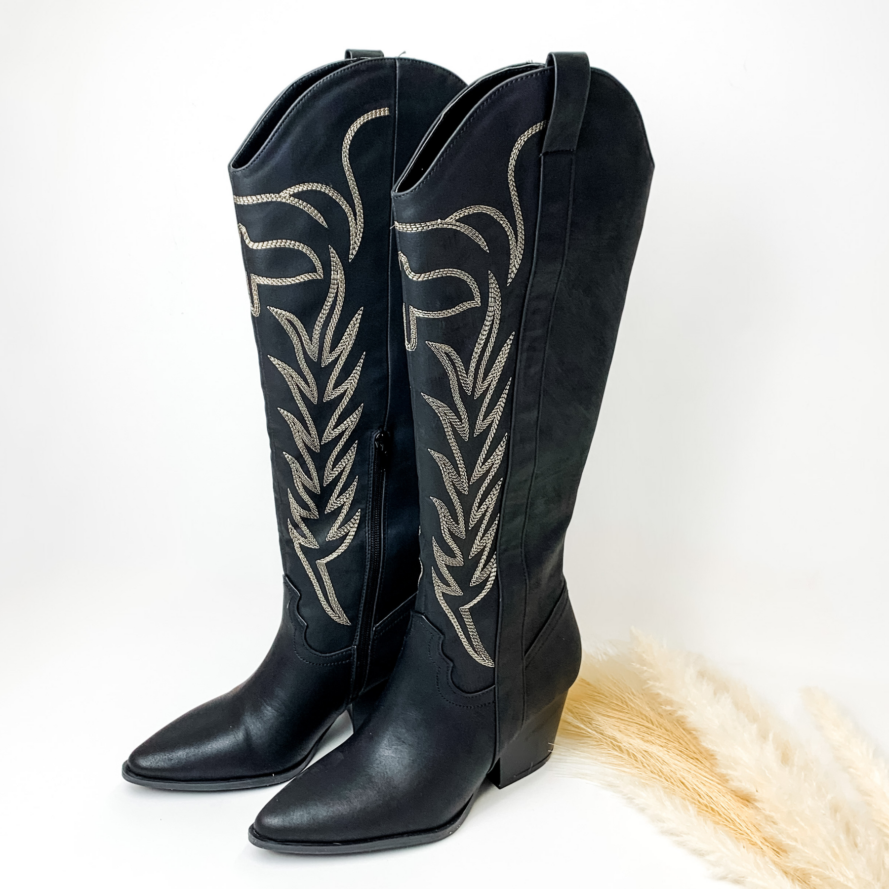 Rodeo Ready Knee High Western Stitch Boots in Black