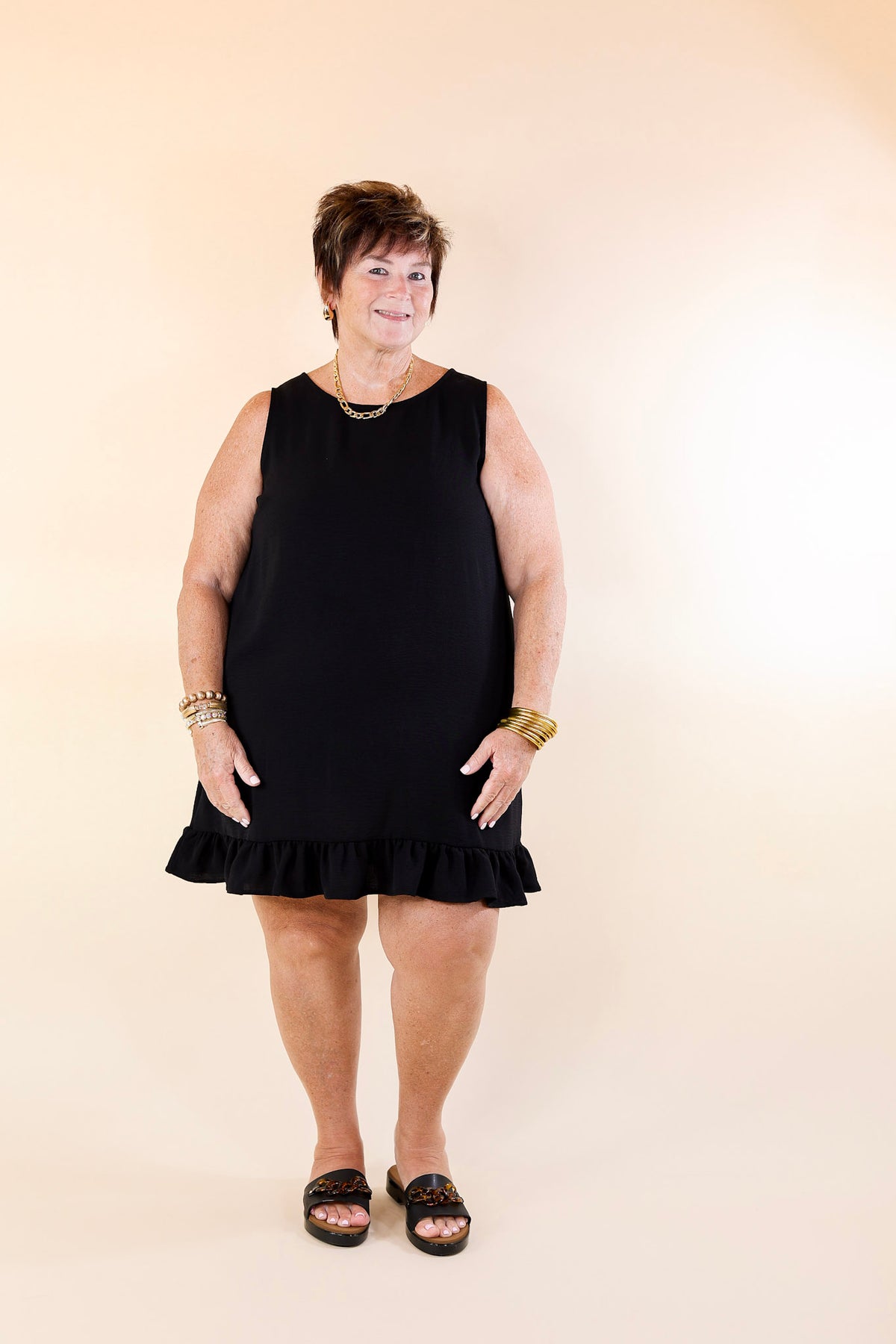 Perfectly Yours Tank Dress with Ruffle Hem in Black