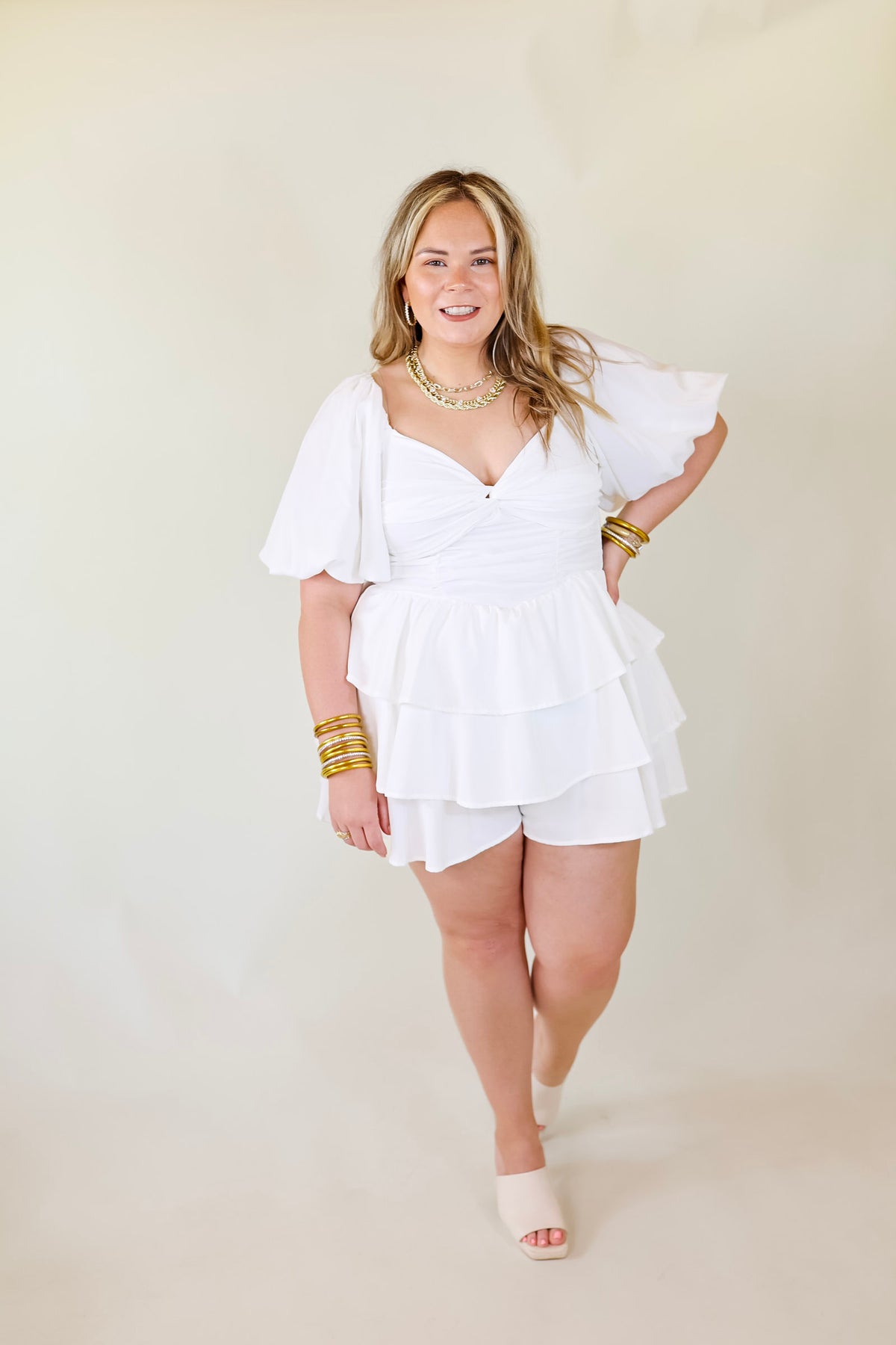 I Want It All Tiered Romper With Puffed Sleeves In White