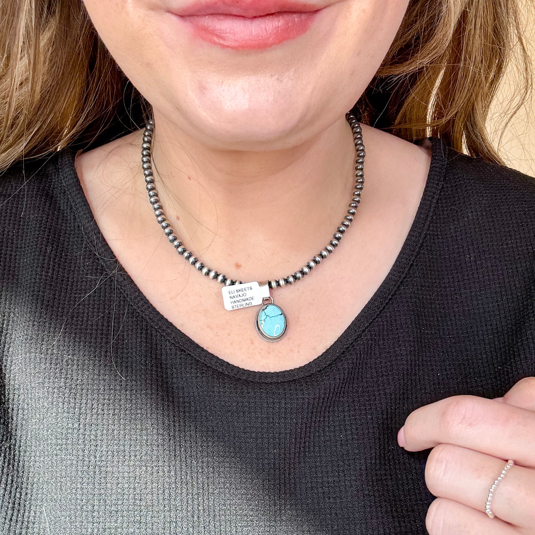 Eli Skeets | Navajo Handmade Sterling Silver Pendant with Egyptian Turquoise Stone