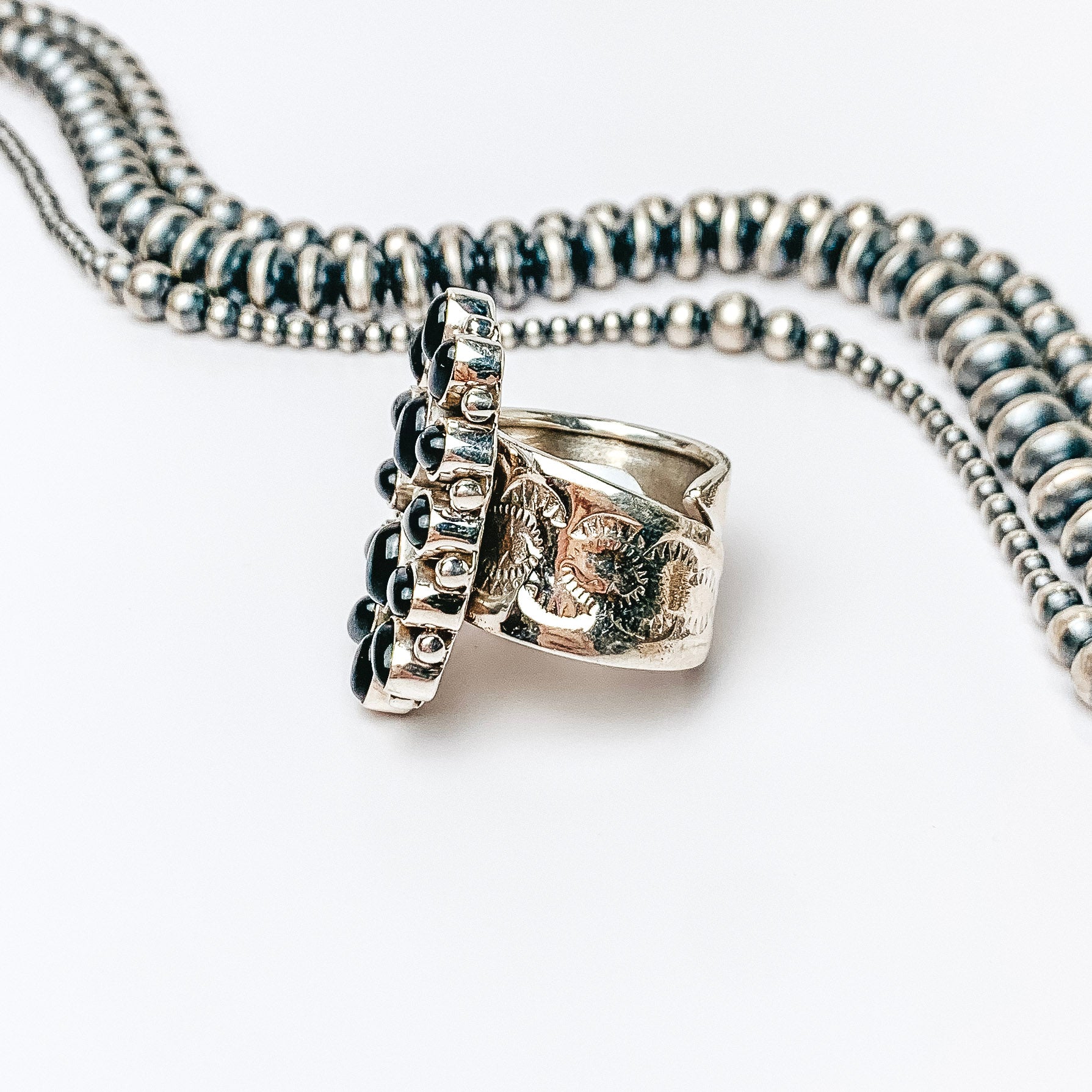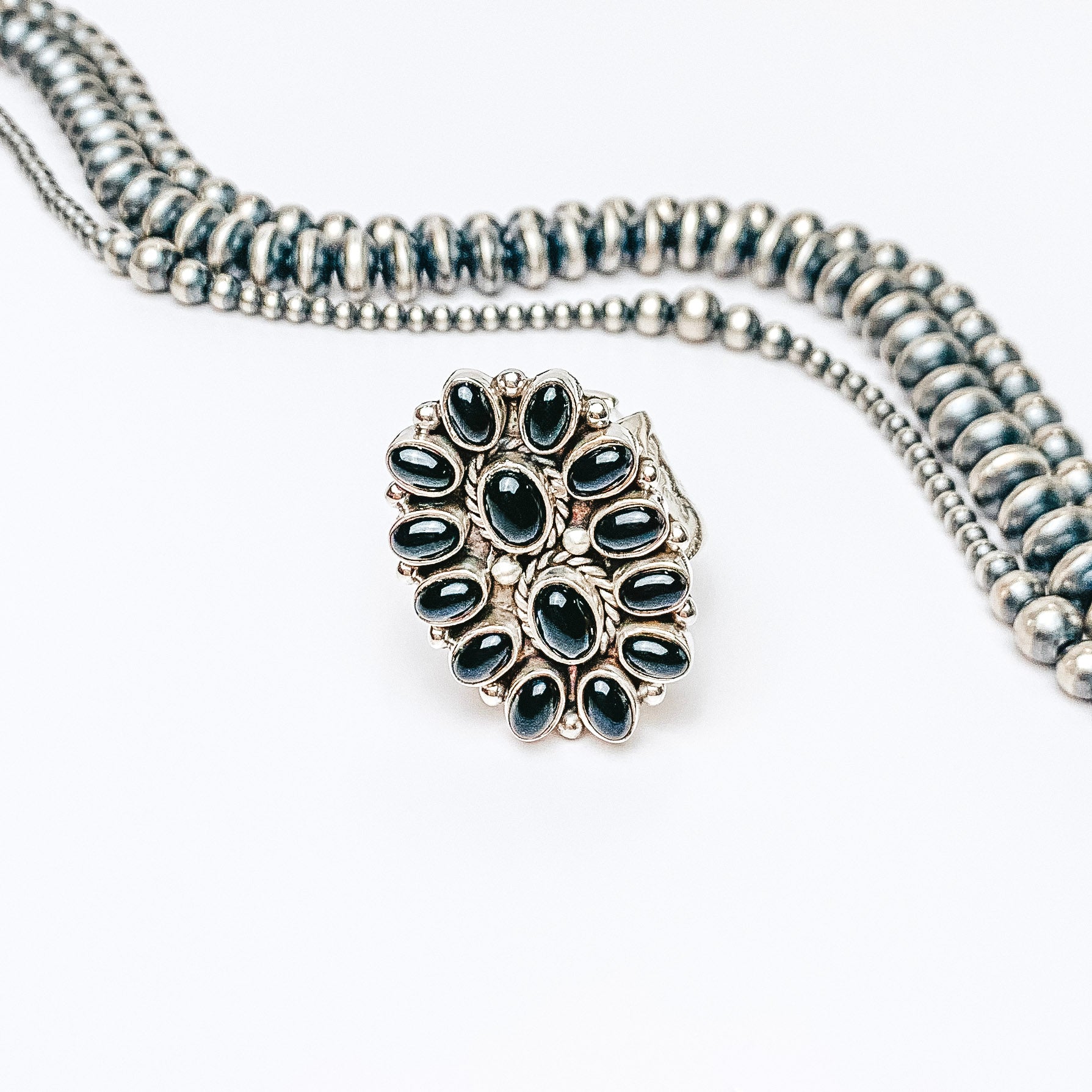 HaDa Collection | Sterling Silver Long Oval Black Onyx Cluster Ring