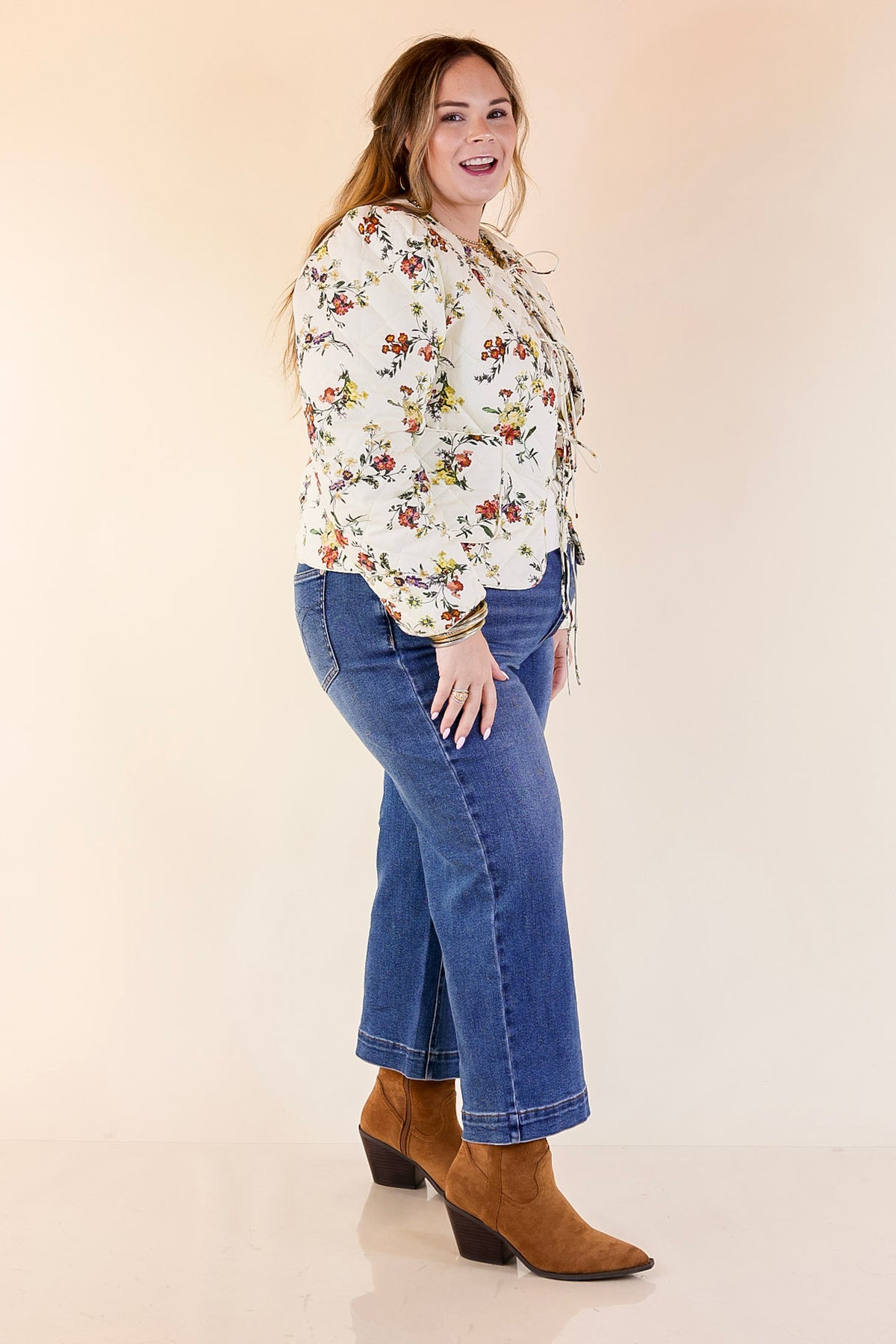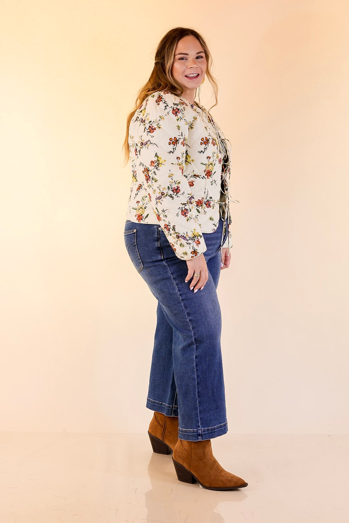 Chic in Bloom Quilted Floral Jacket with Front Ties in Ivory