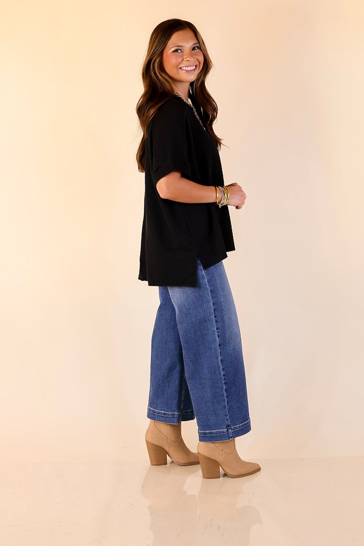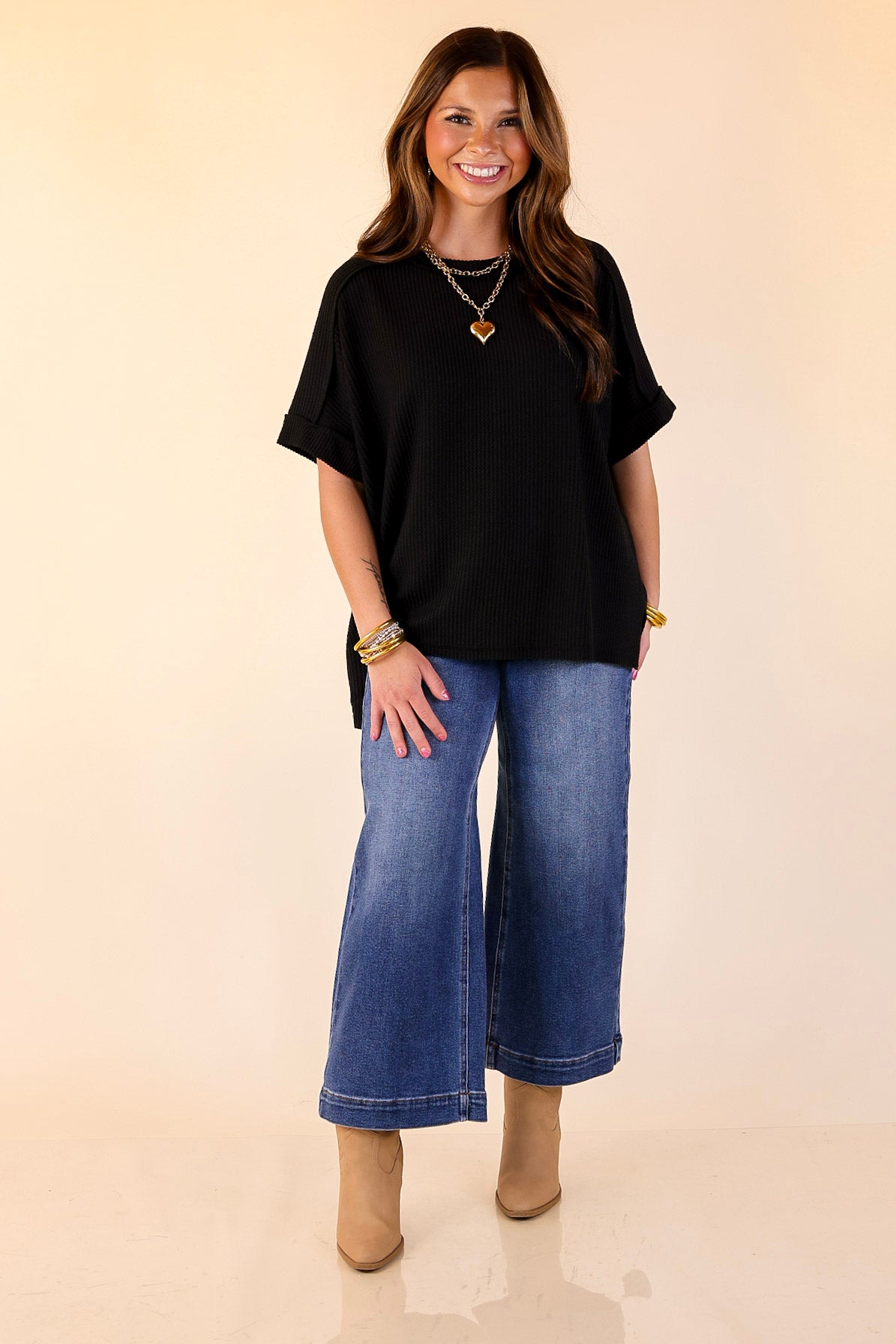 Daily Perfection Scoop Neck Short Sleeve Ribbed Top in Black