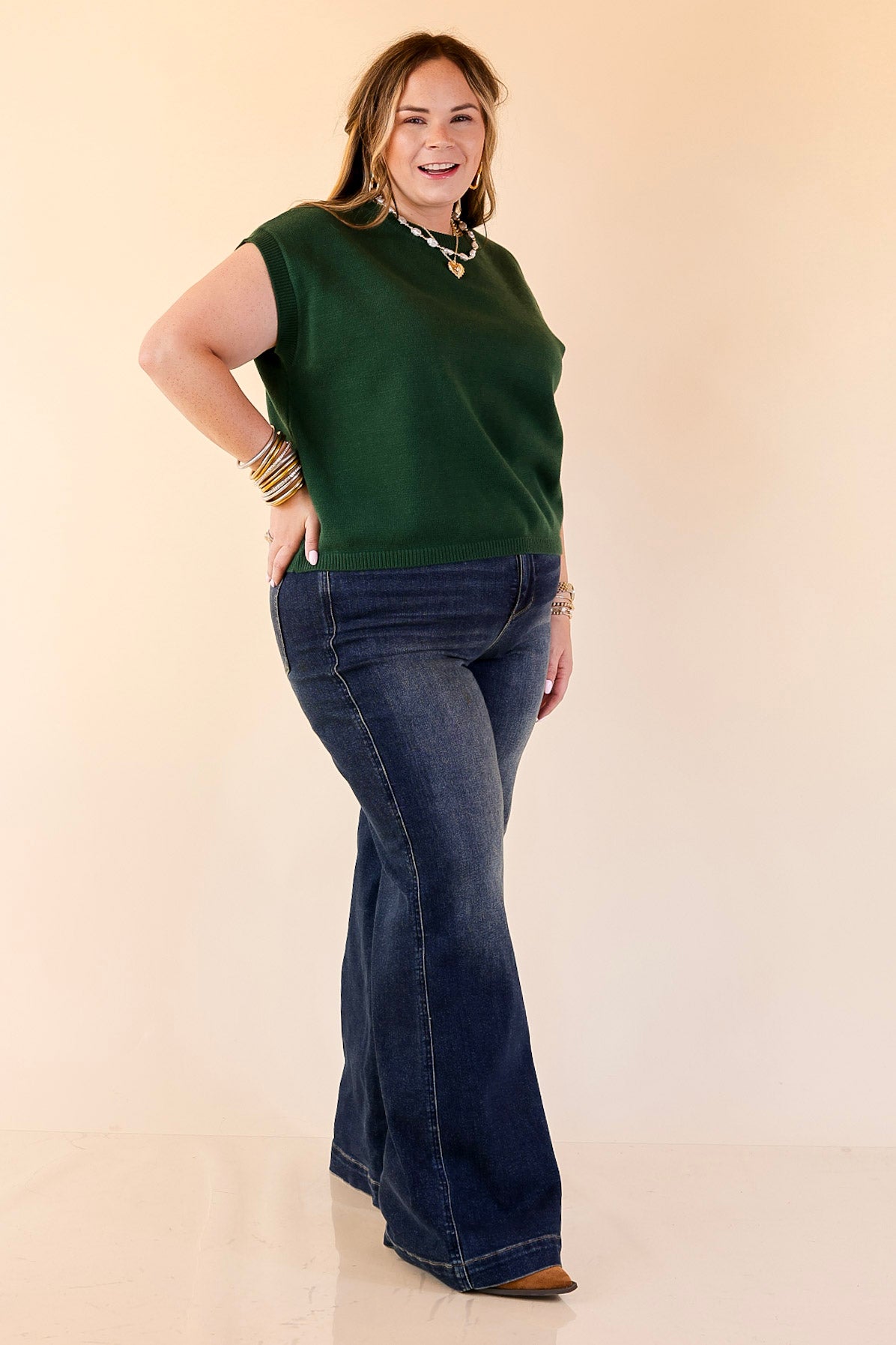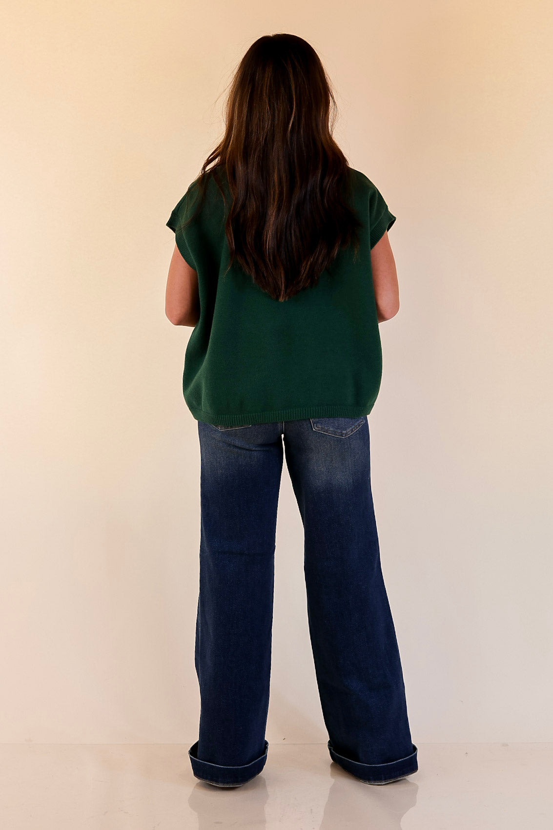 Effortlessly Yours Short Sleeve Oversized Sweater in Forest Green