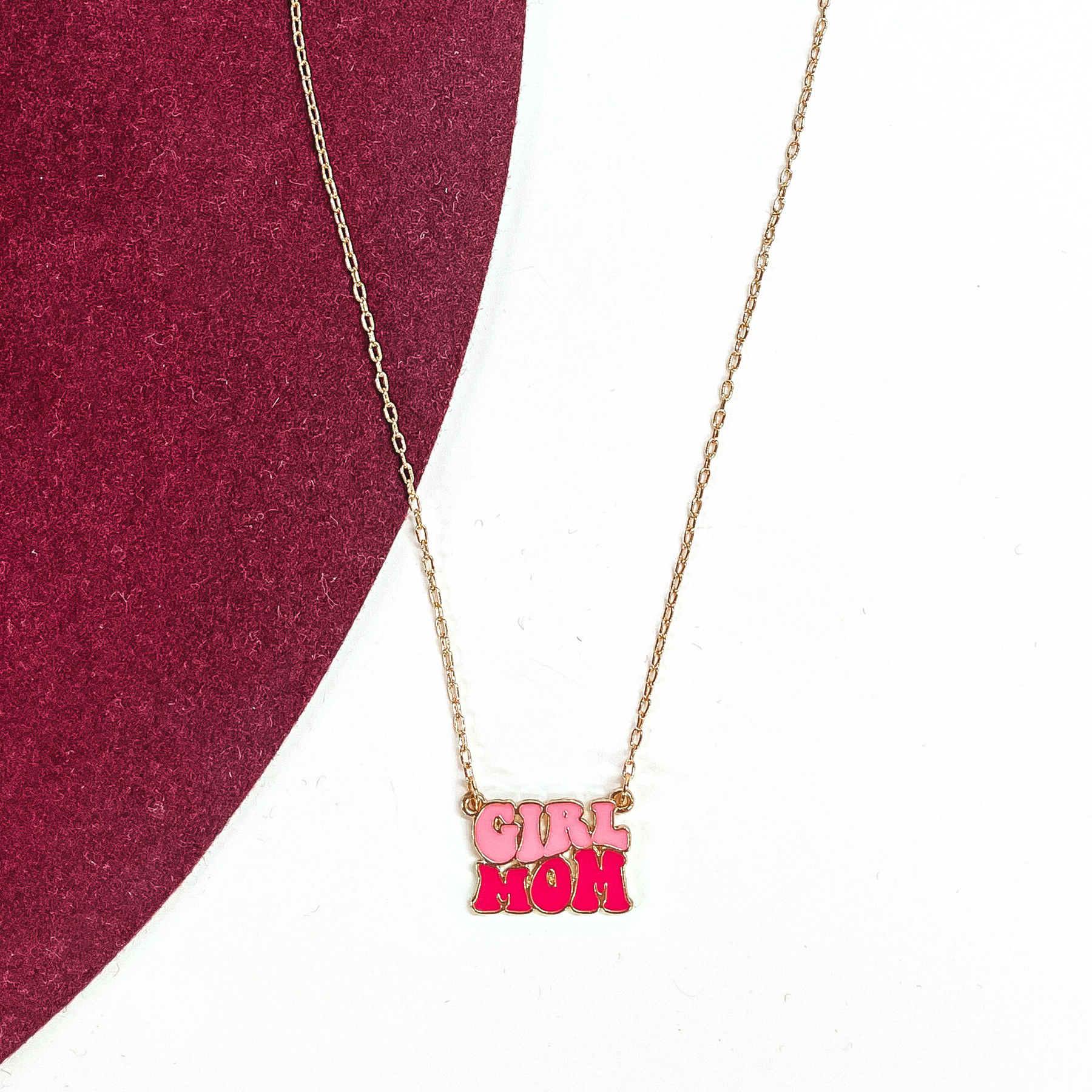 Girl Mom Gold Tone Necklace in Pink - Giddy Up Glamour Boutique