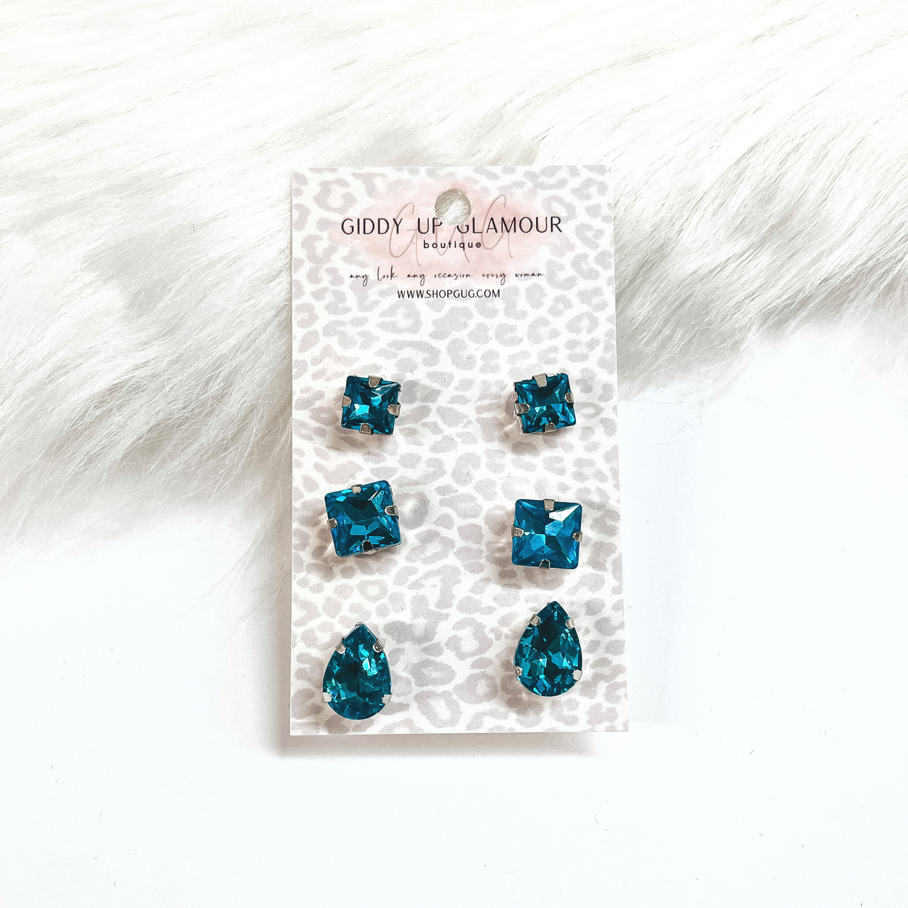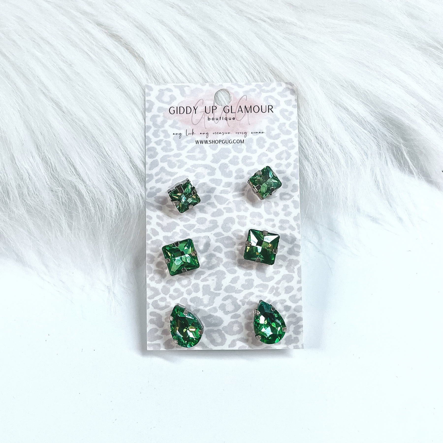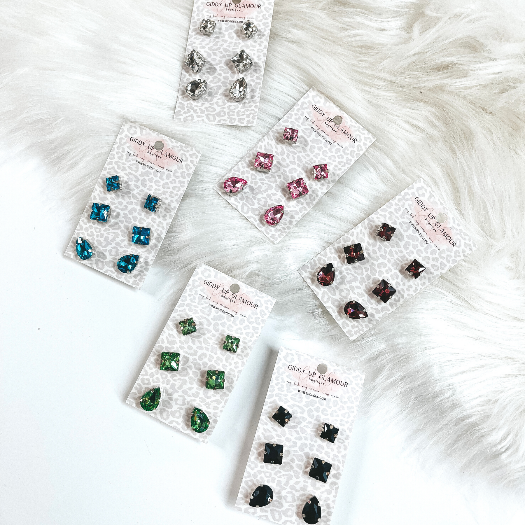 Buy 3 for $10 | Set of Three | Faux Crystal Stud Earrings in Silver Tone Setting
