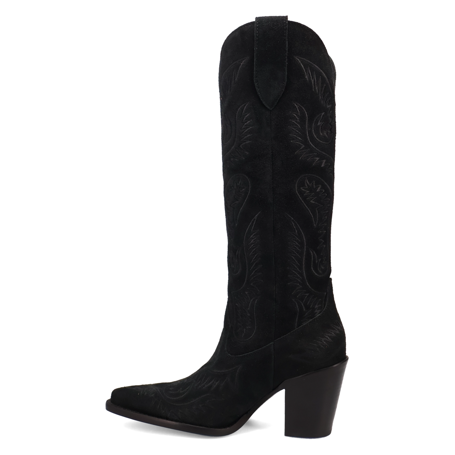 Classic, clean, and effortlessly elevated—the Evita Leather Boot is Western done with timeless sophistication. Crafted from rich suede leather, this tall boot features sleek lines, a snip toe, and allover monochromatic Western stitching that adds texture without the flash. The long silhouette brings just the right amount of drama, while the subtle detailing keeps it endlessly versatile. It's the kind of boot you'll reach for season after season—always stylish, never overdone.