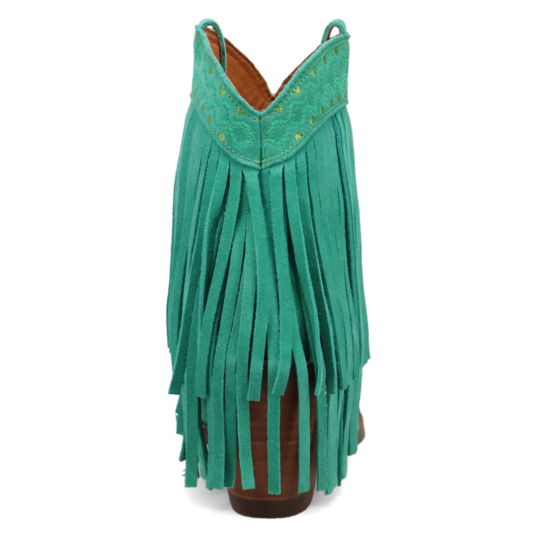 Be the talk of the town in these Green Dingo Tapadero booties! Our suede leather boots feature not one, but TWO layers of fringe, adding a touch of playful flair to any outfit. The intricate western-inspired embroidery wrapping around the ankle makes these booties perfect for any occasion. Preorder now before it's too late!