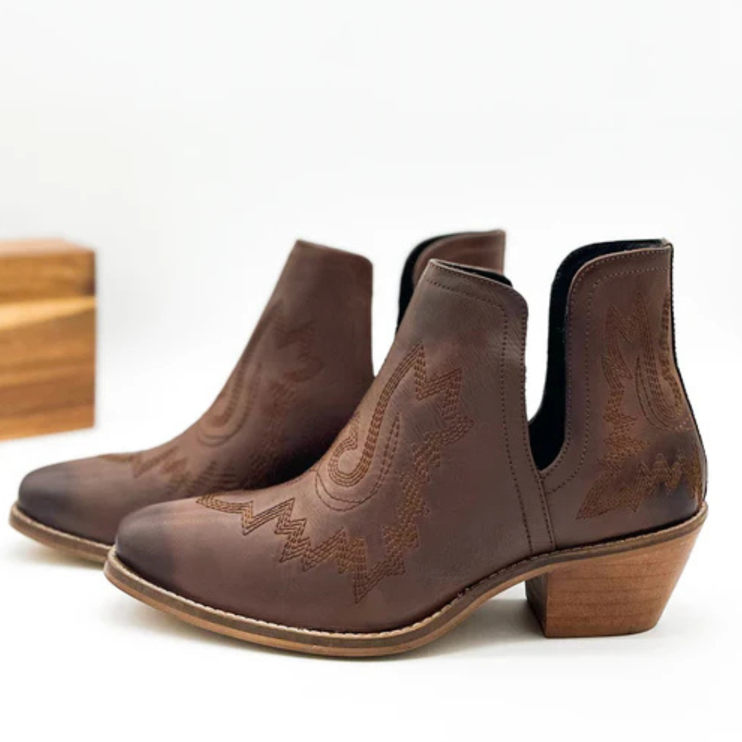 Online Exclusive | Kickin' Western Embroidered Booties in Brown