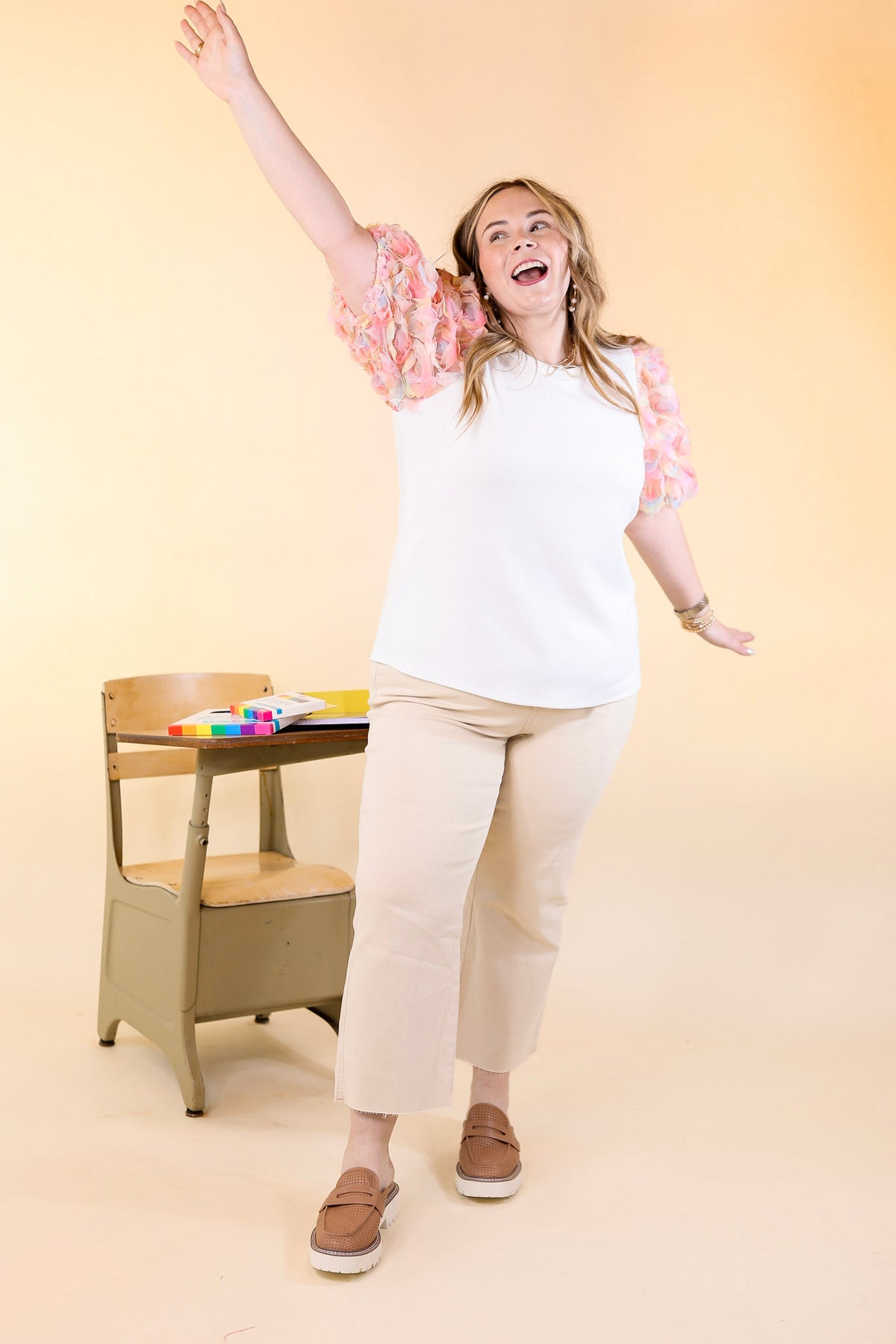 Spring Girls Multi-Color Floral Tulle Balloon Sleeve Top in White