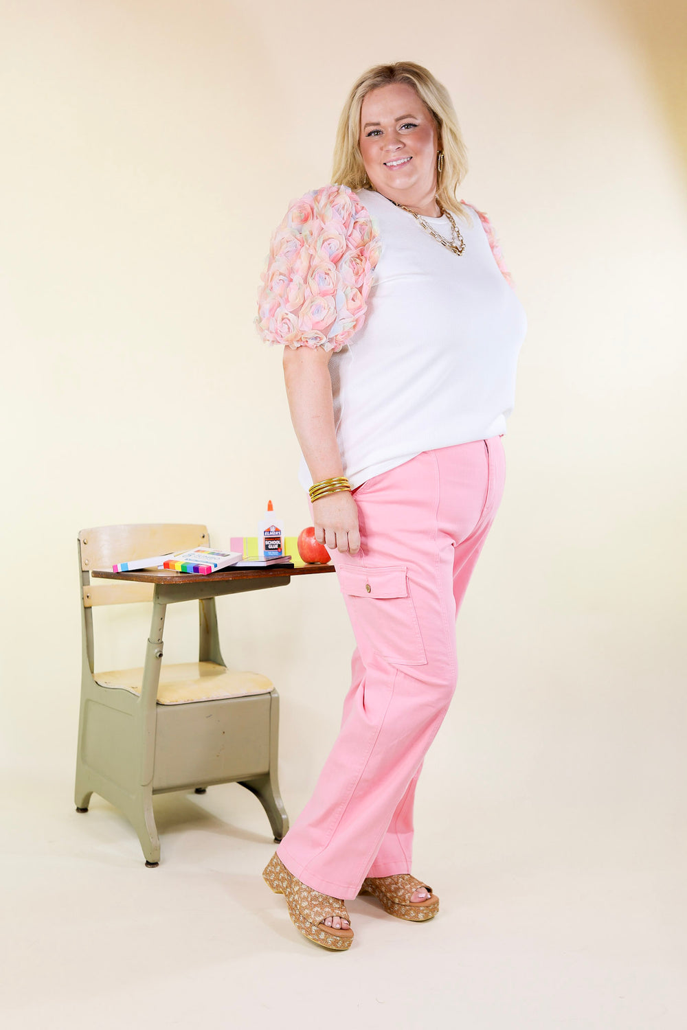 Spring Girls Multi-Color Floral Tulle Balloon Sleeve Top in White