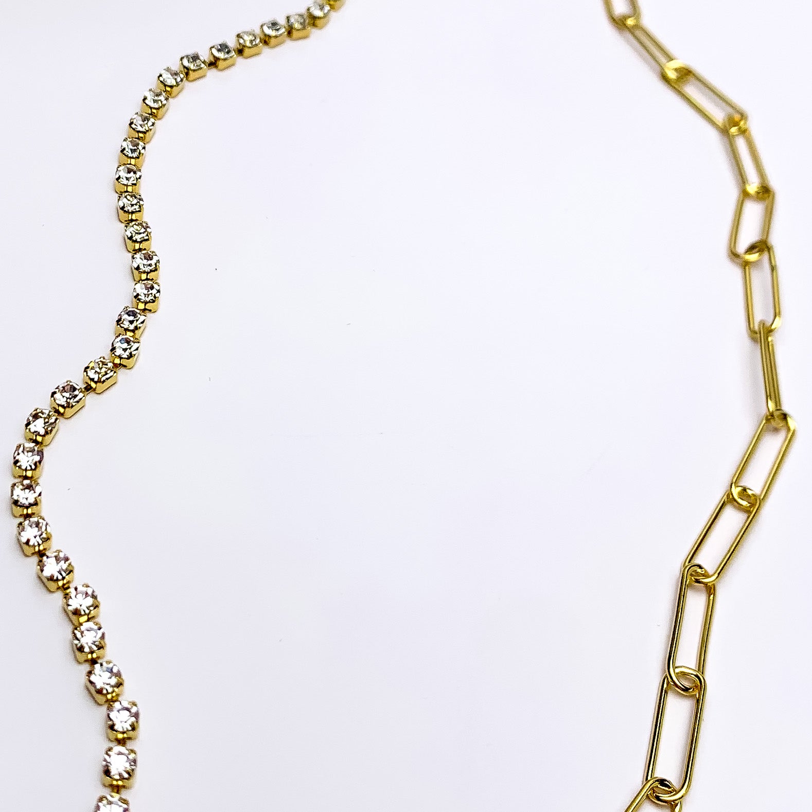 Gold Dipped Necklace Split With Clear Crystals and Chain