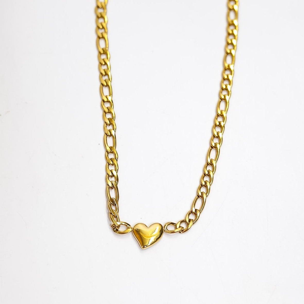 Add a touch of sparkle to your everyday style with this gold Figaro chain, adorned with a sweet heart pendant. Its delicate design makes it perfect for layering with other necklaces, letting you create endless playful combinations. Whether dressing up or down, this necklace brings a fun and flirty vibe to any outfit.