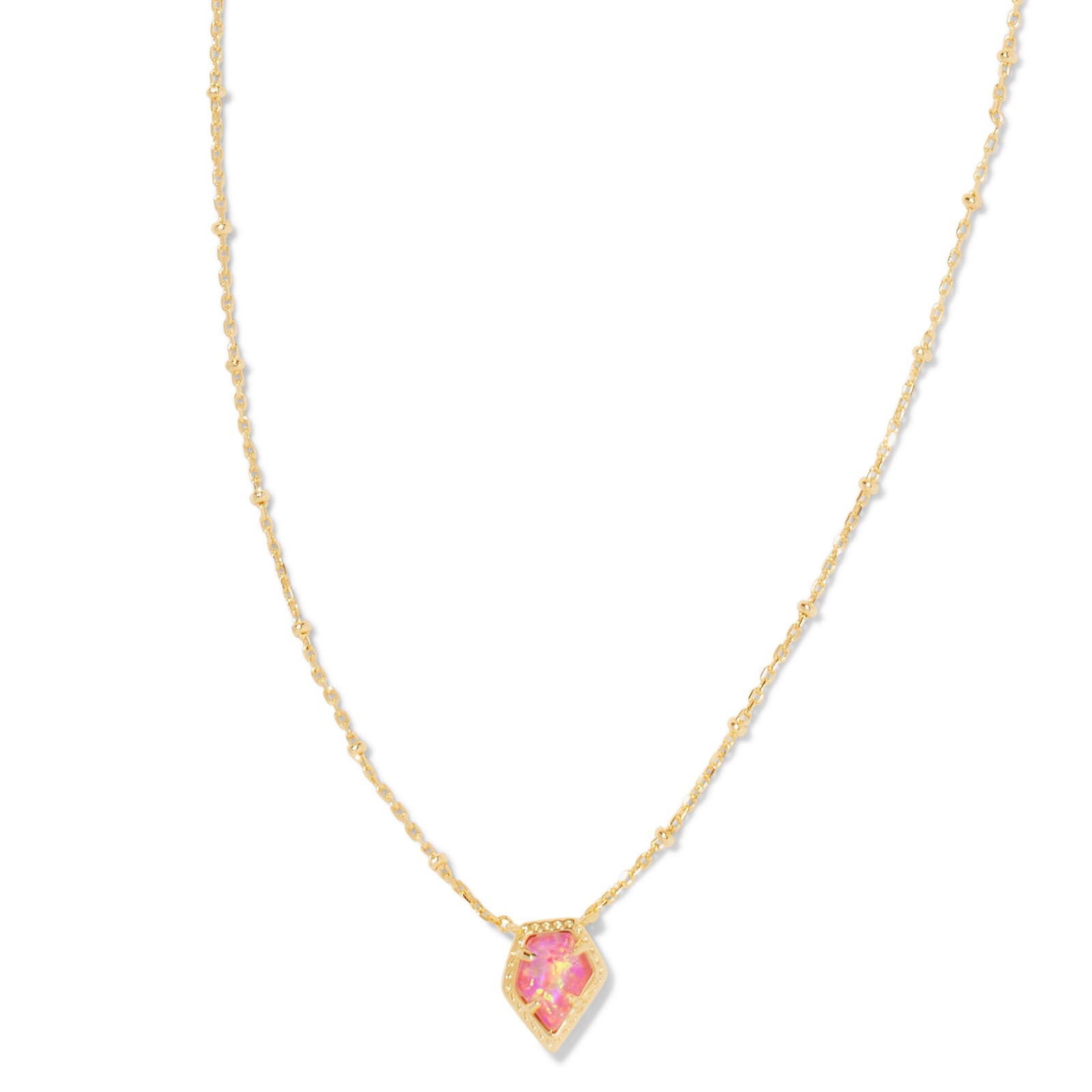 Kendra Scott | Framed Tess Gold Satellite Short Pendant Necklace in Luster Rose Pink Kyocera Opal