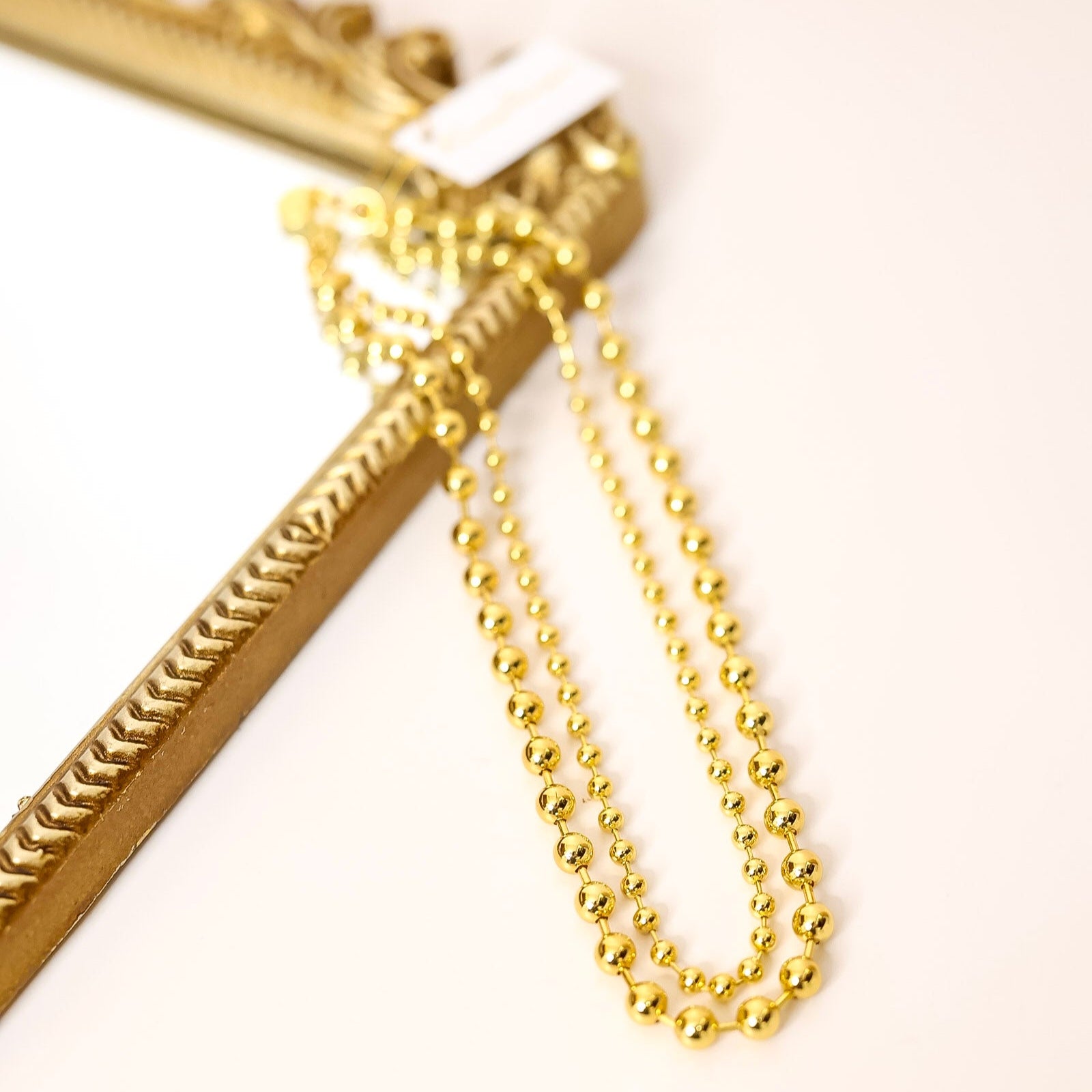 Layering made easy—and chic. The Pierce Double Layer Necklace features two dainty chains with delicate gold-toned beads, perfectly staggered for that effortlessly styled look. It’s the kind of piece you throw on and instantly feel pulled together. Wear it solo for a soft sparkle or layer it when you're feeling extra. Whether it’s a thoughtful gift or your new go-to accessory, this necklace brings timeless elegance with just the right touch of trend.