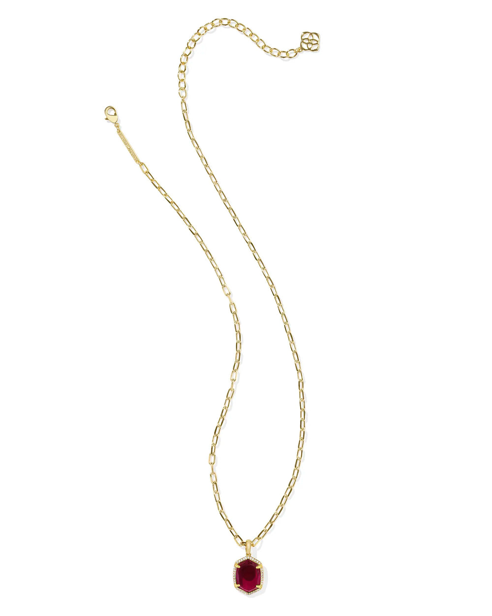 Kendra Scott | Abbie Gold Pave Frame Large Long Pendant Necklace in Cranberry Red Illusion