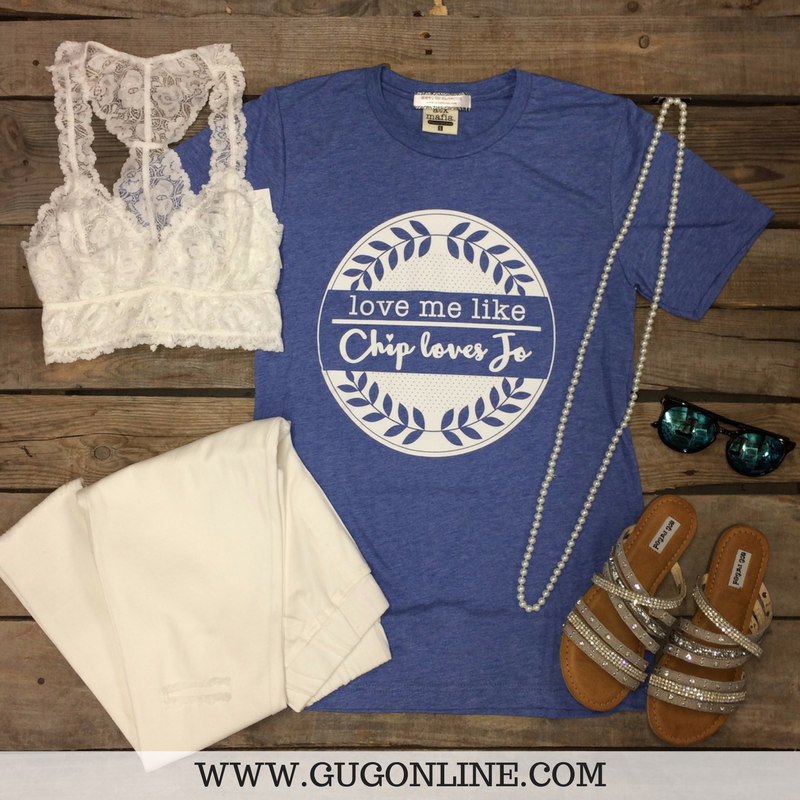 Last Chance Size Small | Love Me Like Chip Loves Jo Short Sleeve Tee Shirt in Blue | ONLY 1 LEFT!