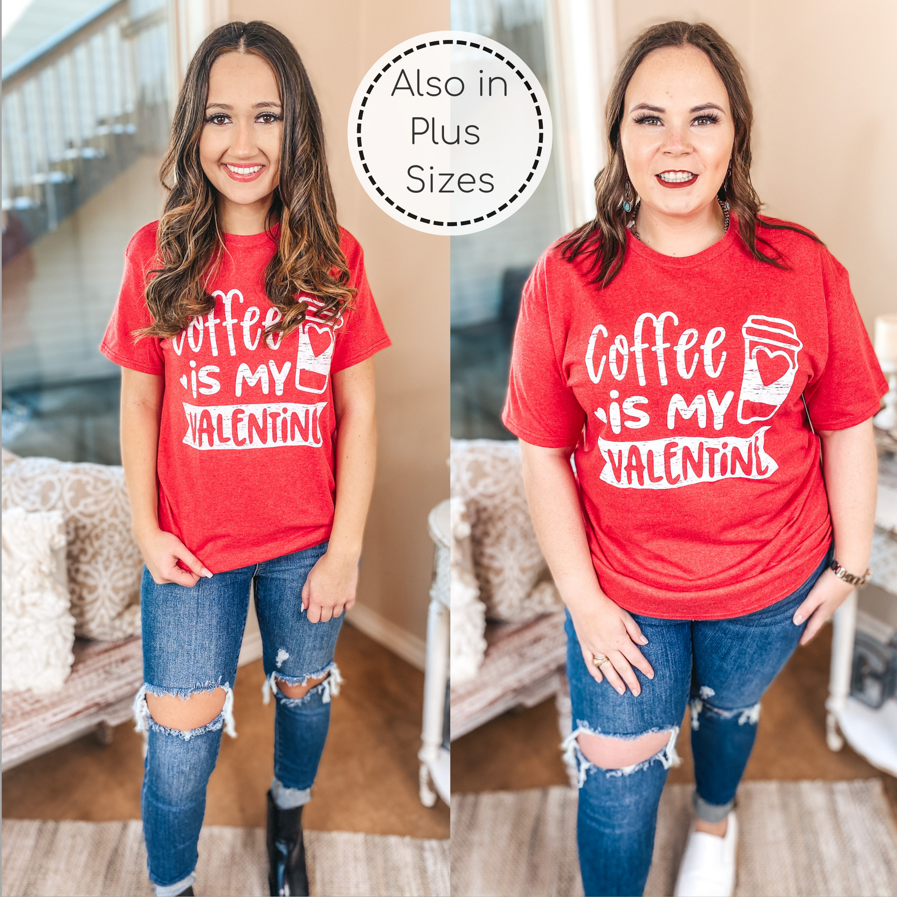 Coffee is My Valentine Short Sleeve Graphic Tee in Heather Red