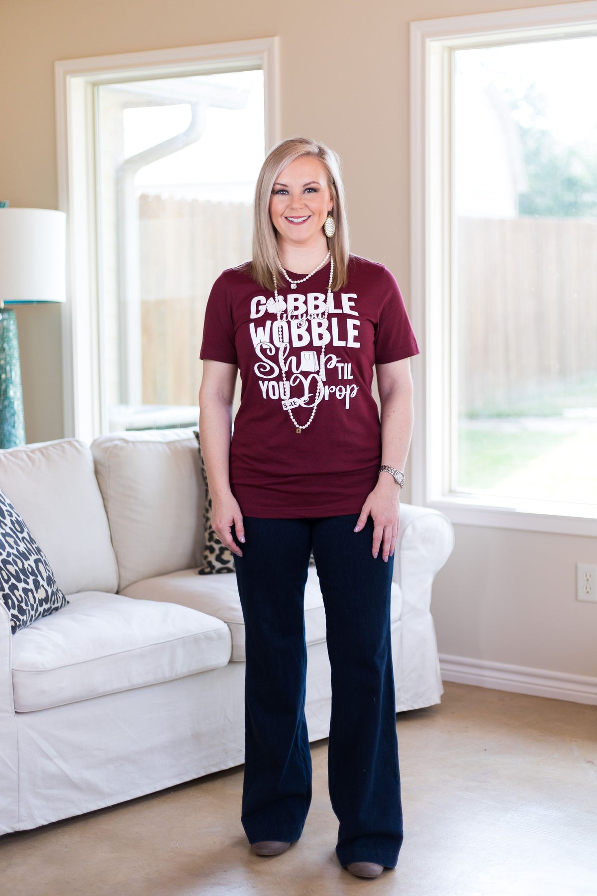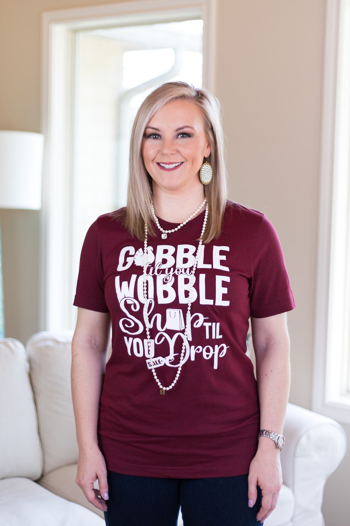 Last Chance Size Small | Gobble Til You Wobble Shop Til You Drop Short Sleeve Tee Shirt in Maroon