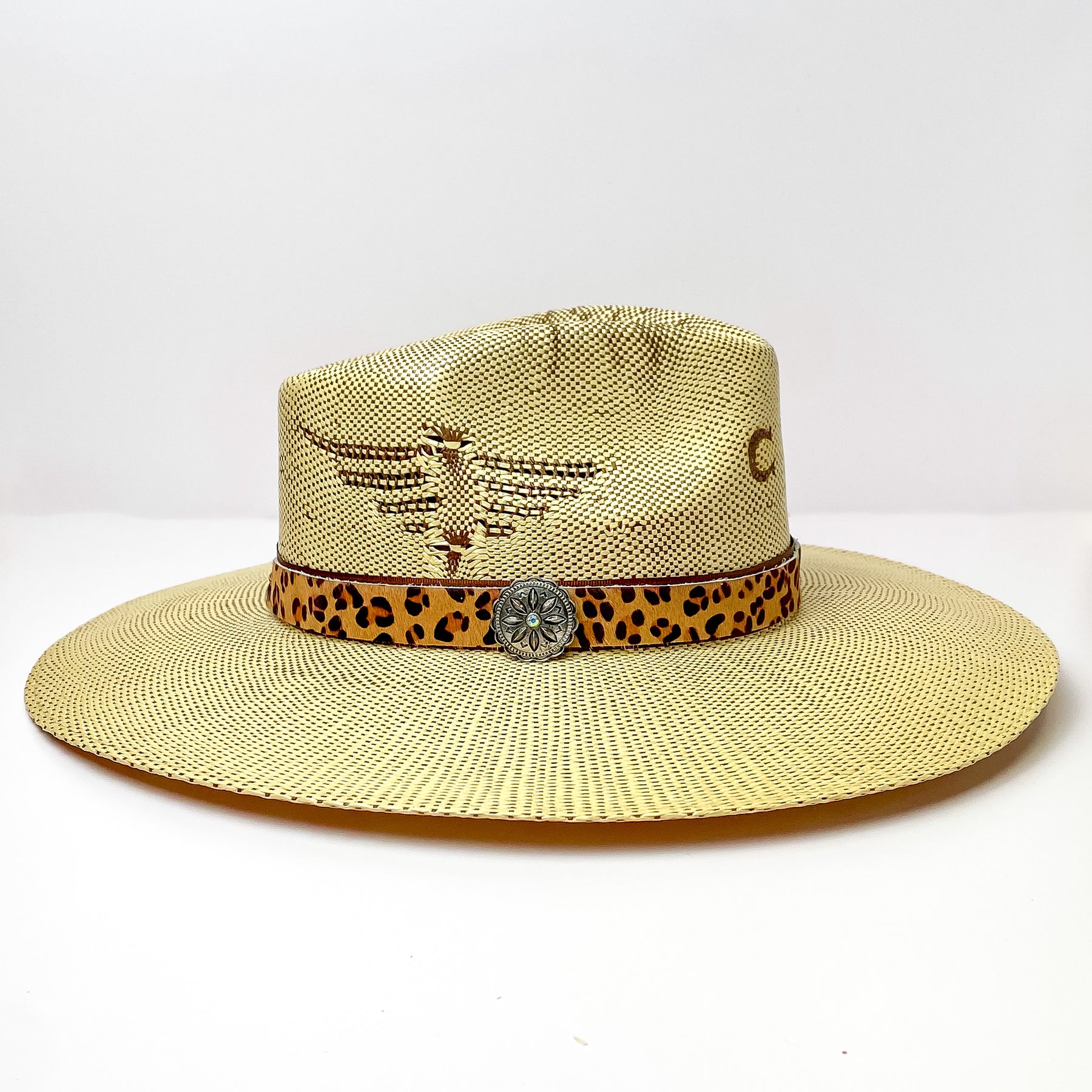 Leopard Print Hat Band with Silver Tone Concho Charm - Giddy Up Glamour Boutique