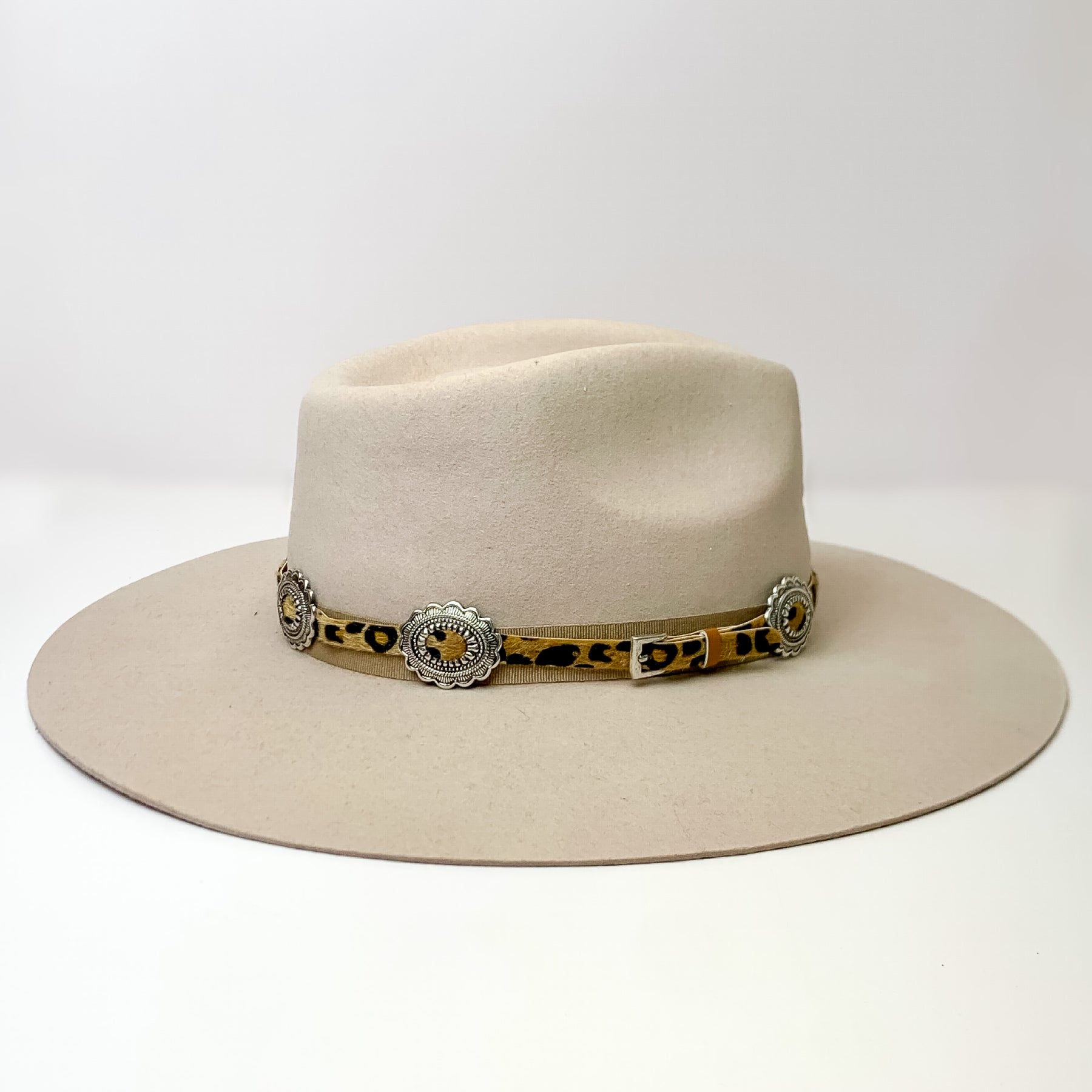 Leopard Print Hat Band With Conchos in Silver Tone - Giddy Up Glamour Boutique