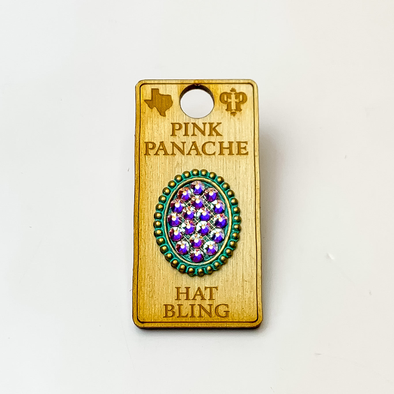 Pink Panache | Patina Tone Oval Hat Pin with AB Crystals