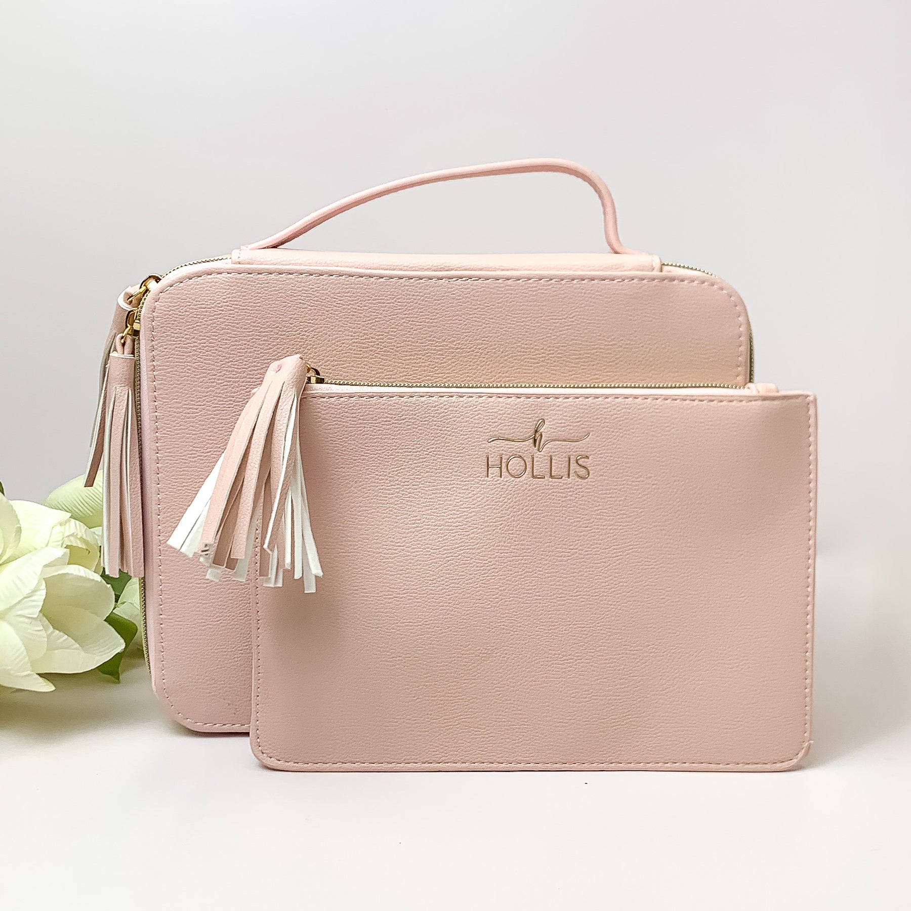 The holy grail make up bag! This one is for my make up junkies! The Jett Setter comes lined with our unique interior that can easily be wiped out with a make up wipe and will never stain! No more throwing out your make up bag when you have a spill. This bag is perfect for travel and even comes with a pouch to hold your make up brushes and smaller items.