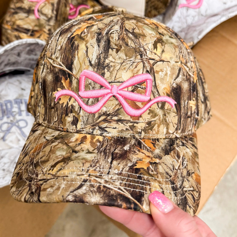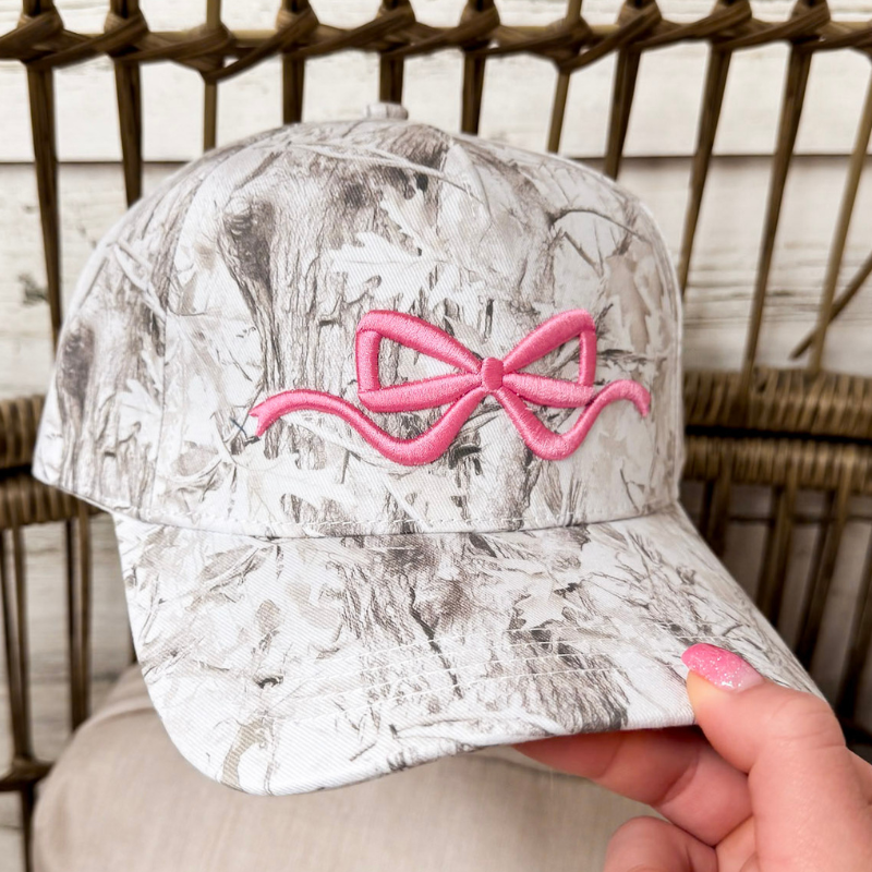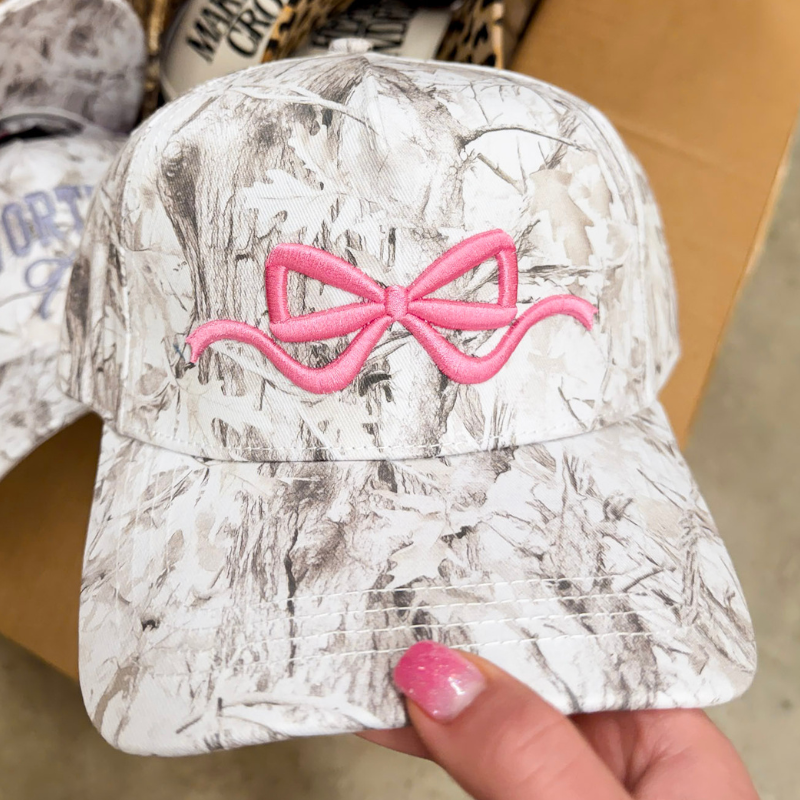 Simply Southern | Charming Touch Bow Embroidered Camo Print Hat in White