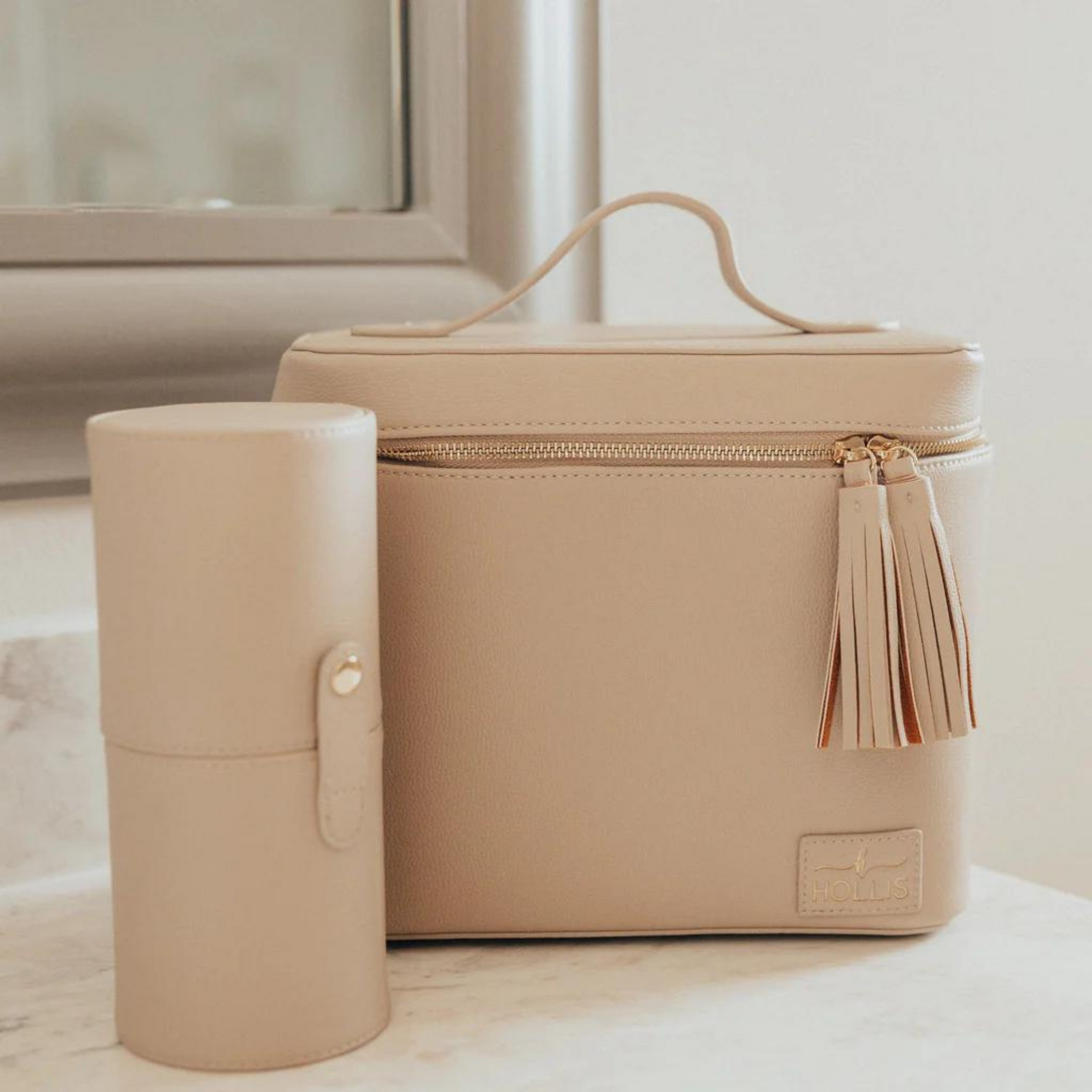 Take your travel game to the next level with our best selling makeup bag - Lux. Your all time favorite Leopard Lux is now available in NUDE! This bag has a place for everything! From its one of a kind brush holders (comes included) to its amazing functionality, this bag will not disappoint. Compartments for foundations, mascaras, eyebrow pencils and everything in between! This beauty fits the biggest of full size eyeshadow pallets. The zipper compartment up top to hold jewelry or other small items. The quality is unmatched and this bag is sure to be a showstopper!