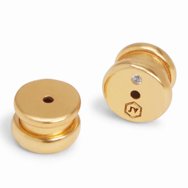 Our jewelry is hand set in 24k gold plate over nickel-free brass and sealed to prevent tarnish. Maintain the jewelry's beautiful luster by avoiding contact with lotion, perfume, makeup, or any harsh cleaning products. Remove your jewelry before showering, swimming, exercising, or washing your hands.