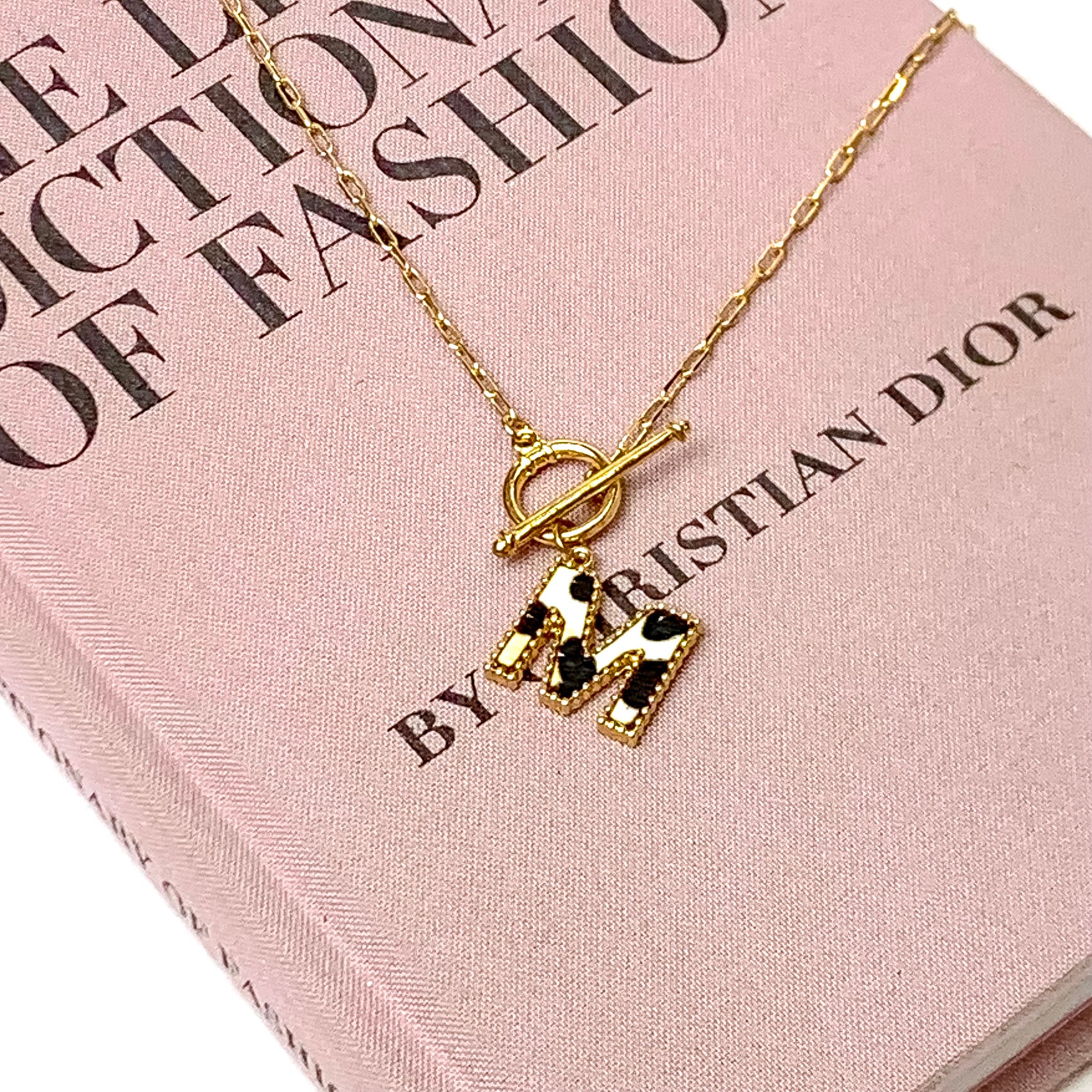 Hair on Hide Gold Tone Front Toggle Initial Necklace