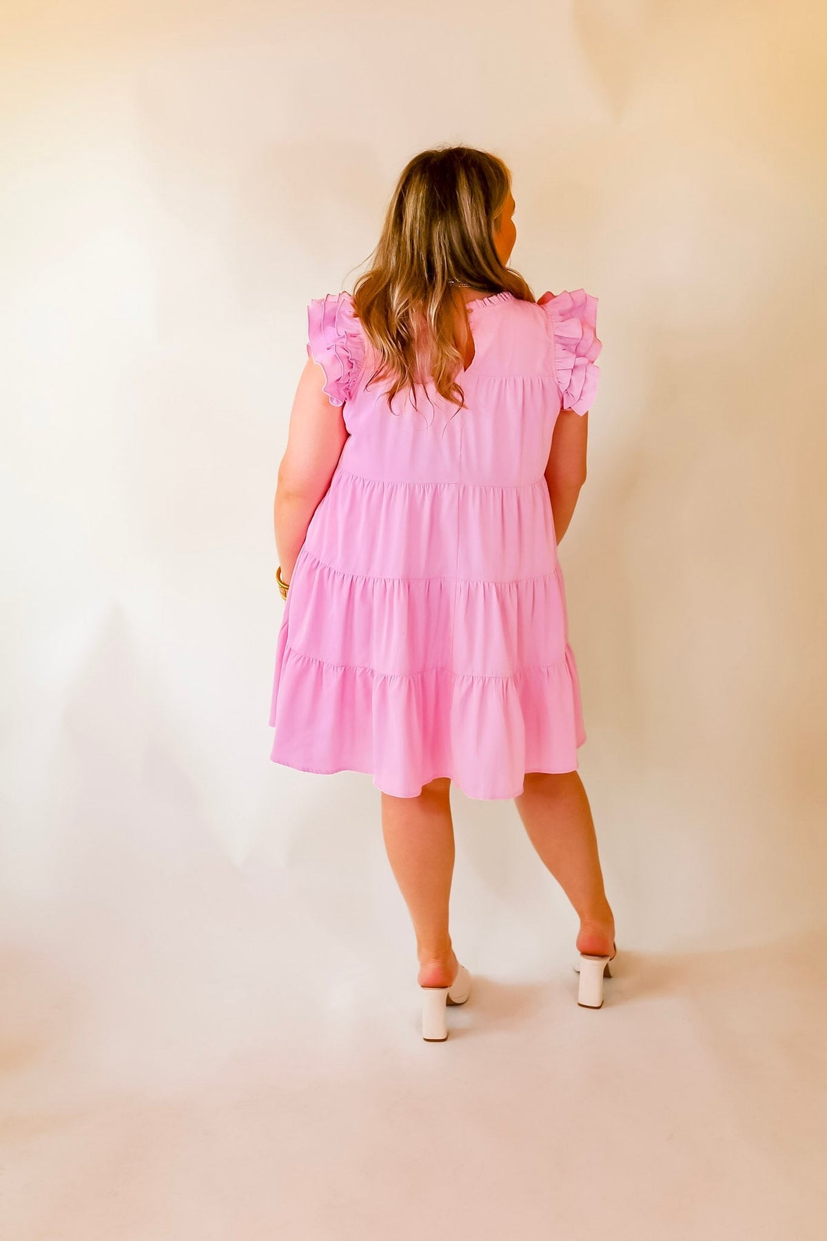 Chic On Scene Ruffle Tiered Dress with Pleated Detailing in Light Pink