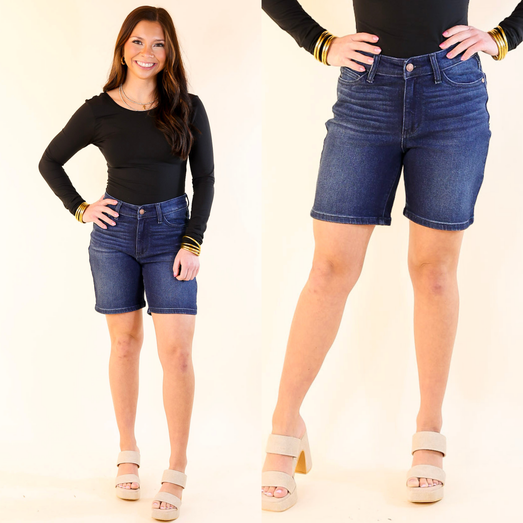 Judy Blue | On the Go Bermuda Shorts in Dark Wash
