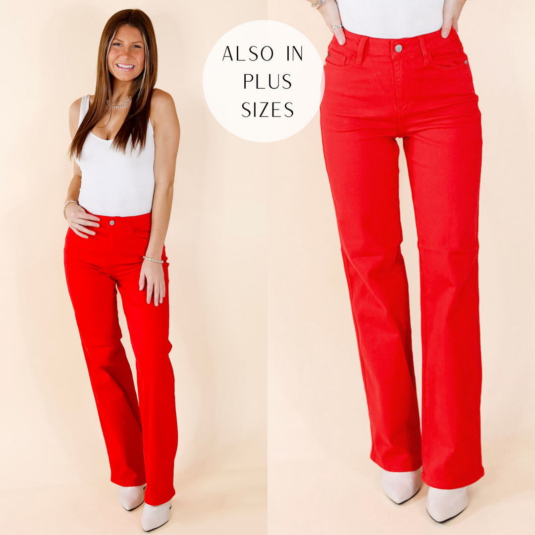 Last Chance Size 14W | Judy Blue | For The Record Garment Dyed 90's Straight Leg Jeans in Red