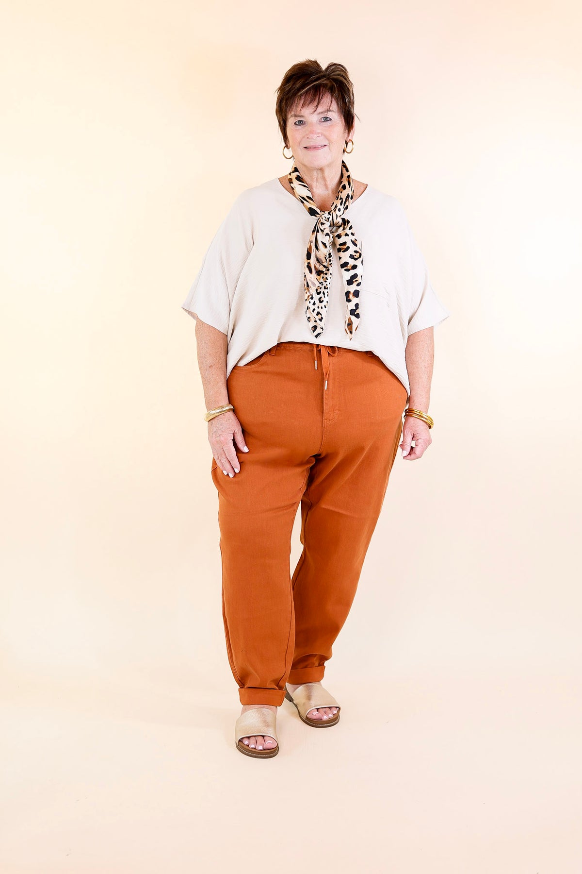 Discover the perfect blend of comfort and style in these Judy Blue | Keep It a Secret Relaxed Pull on Joggers. These jean joggers have a relaxed fit, an orange color, and can be cuffed for an effortless look. Feel as confident as ever in the looks and quality of these joggers - it's our secret!