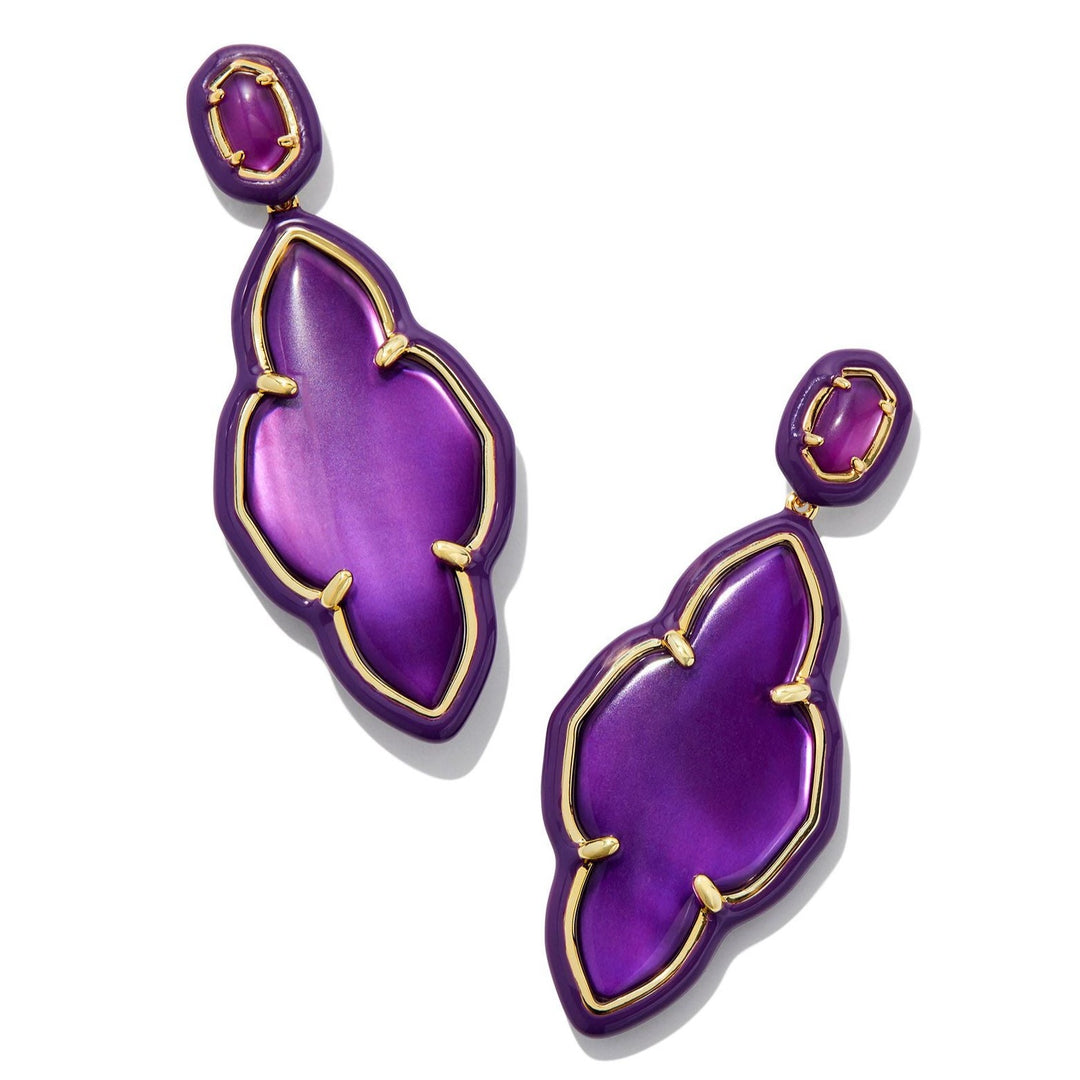 Kendra Scott | Abbie Gold Enamel Frame Statement Earrings in Purple Mother of Pearl