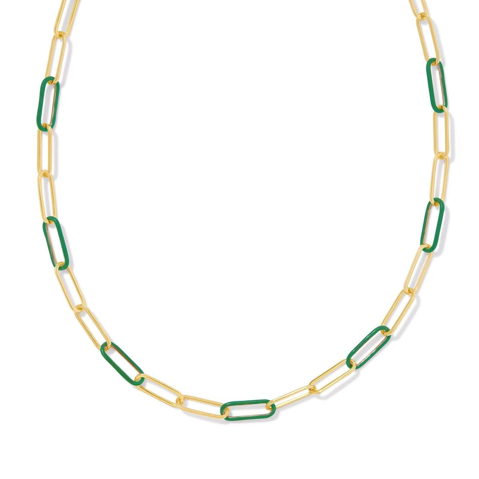Kendra Scott | Ainsley Gold Convertible Chain Necklace in Green Enamel