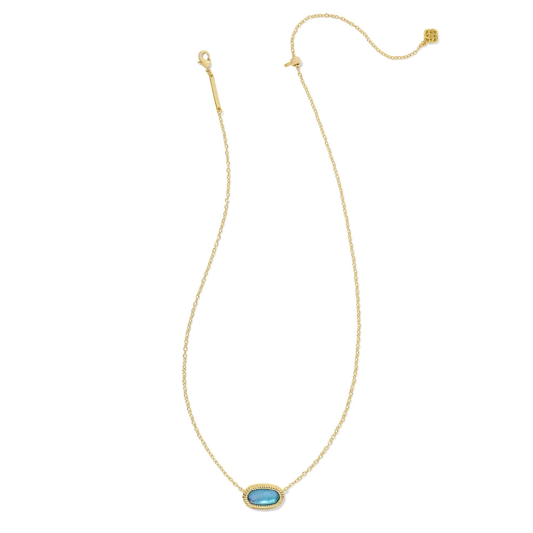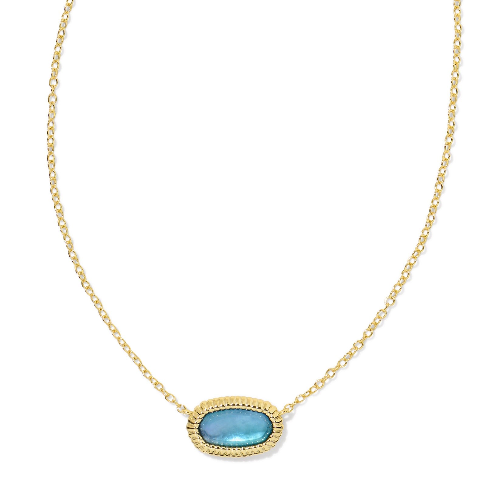 Kendra Scott | Elisa Gold Ridge Frame Short Pendant Necklace in Indigo Watercolor Illusion - Giddy Up Glamour Boutique