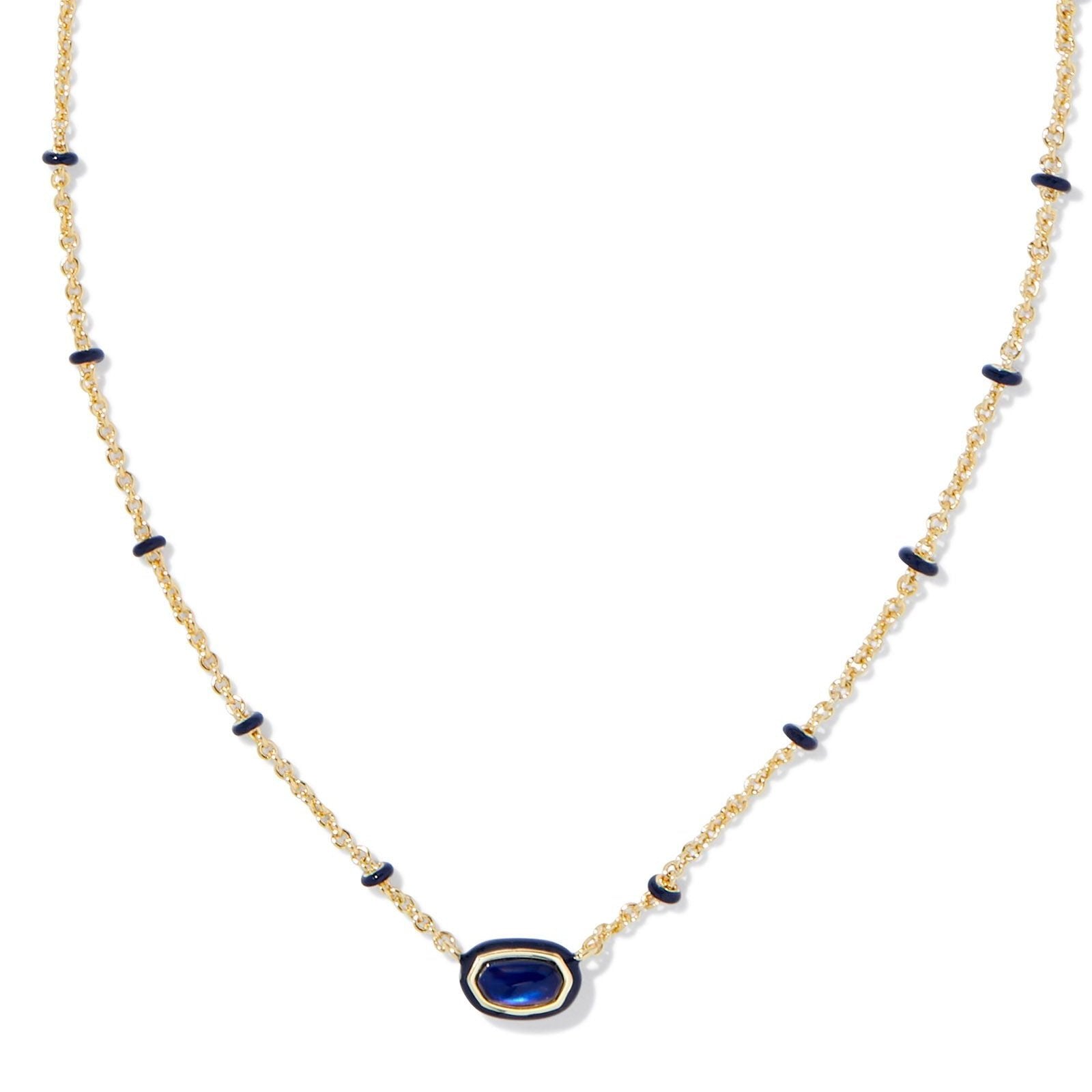 Kendra Scott | Mini Elisa Gold Enamel Frame Short Pendant Necklace in Navy Mother-of-Pearl
