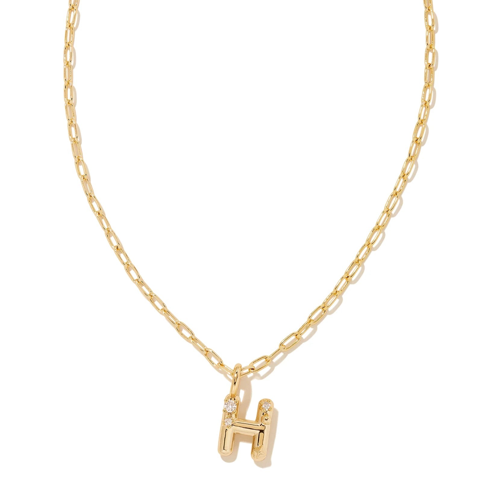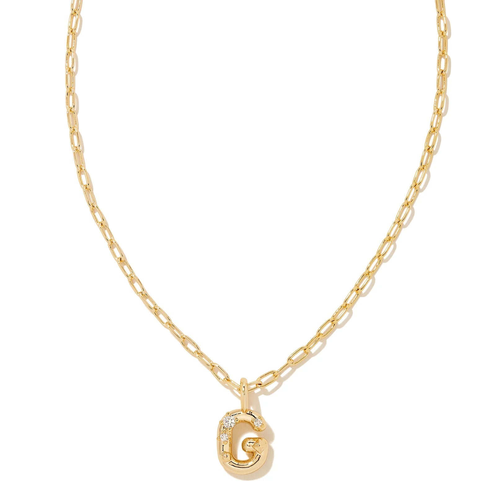 Kendra Scott | Crystal Initial Letter Gold Short Pendant Necklace in White Crystal