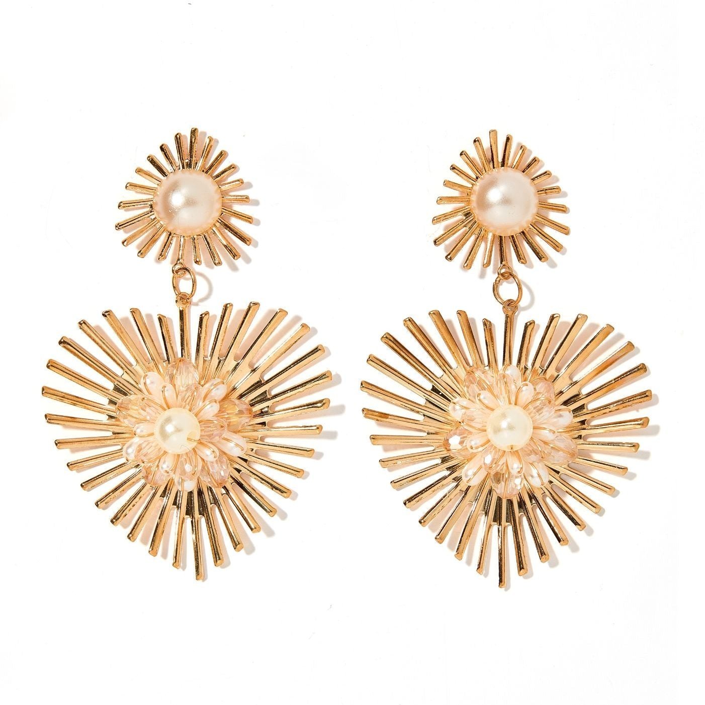 Linny Co | Fiona Gold Tone Heart Drop Earrings with Pearl and Crystal Accents