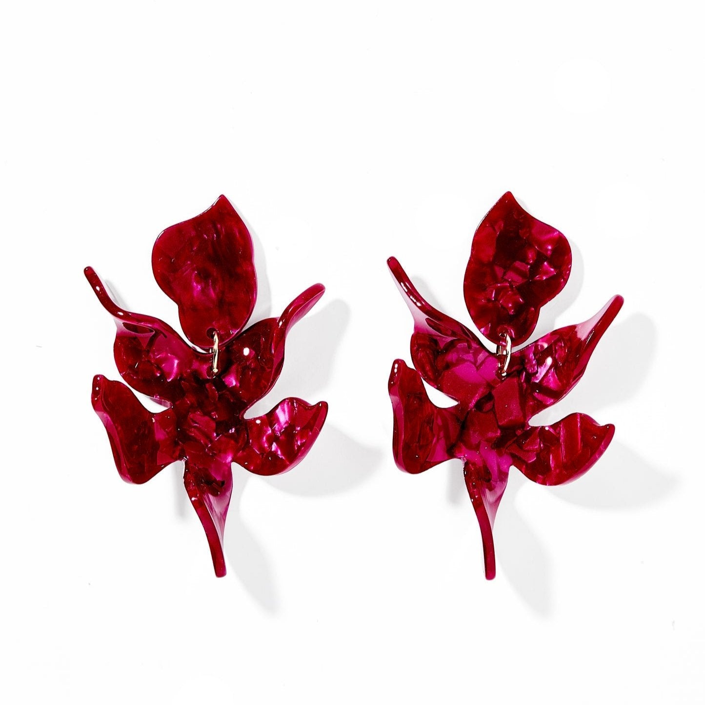 Discover the elegance of Linny Co Flora Earrings, designed for both style and comfort. These oversized earrings are crafted from 100% surgical-grade stainless steel and eco-friendly acetate, ensuring they are light, durable, and safe for sensitive ears. Featuring dark purple and red hued flower-shaped accents with a pearlized finish, these statement earrings are copper and nickel-free, perfect for adding a touch of glamour to any outfit.