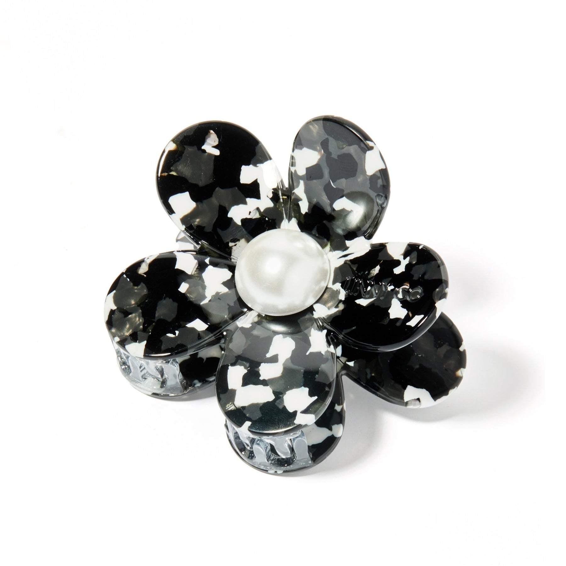 Linny Co | Gigi Flower Hair Clip in Black and White with Pearl Center