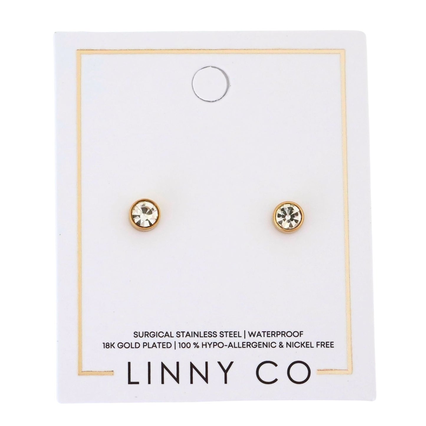 Linny Co | Juliet 5mm Gold Tone Crystal Flatback Stud Earrings