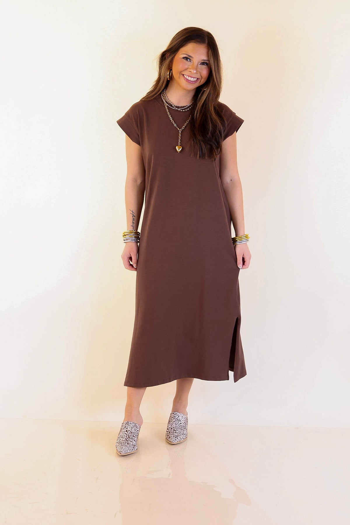 Effortlessly Lovely Short Sleeve Midi Tee Shirt Dress in Chocolate Brown