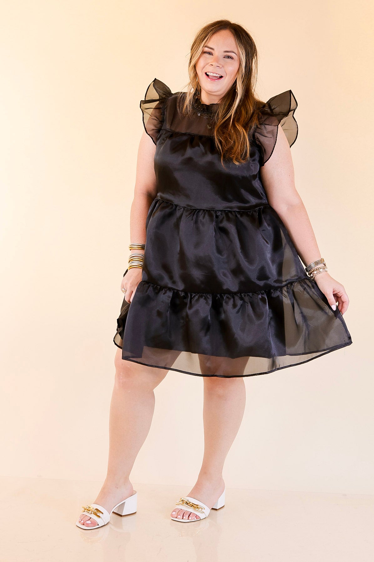 Classic, chic, and ready for any event—the Jane Dress by Mud Pie in black is a timeless piece your closet will thank you for. Crafted from airy organza, this tiered dress has ruffle cap sleeves, a high ruffle neckline, and a flattering A-line silhouette that feels just as polished as it looks. Whether you’re headed to a holiday party, a wedding, or a night out, this dress is your go-to for effortless sophistication.