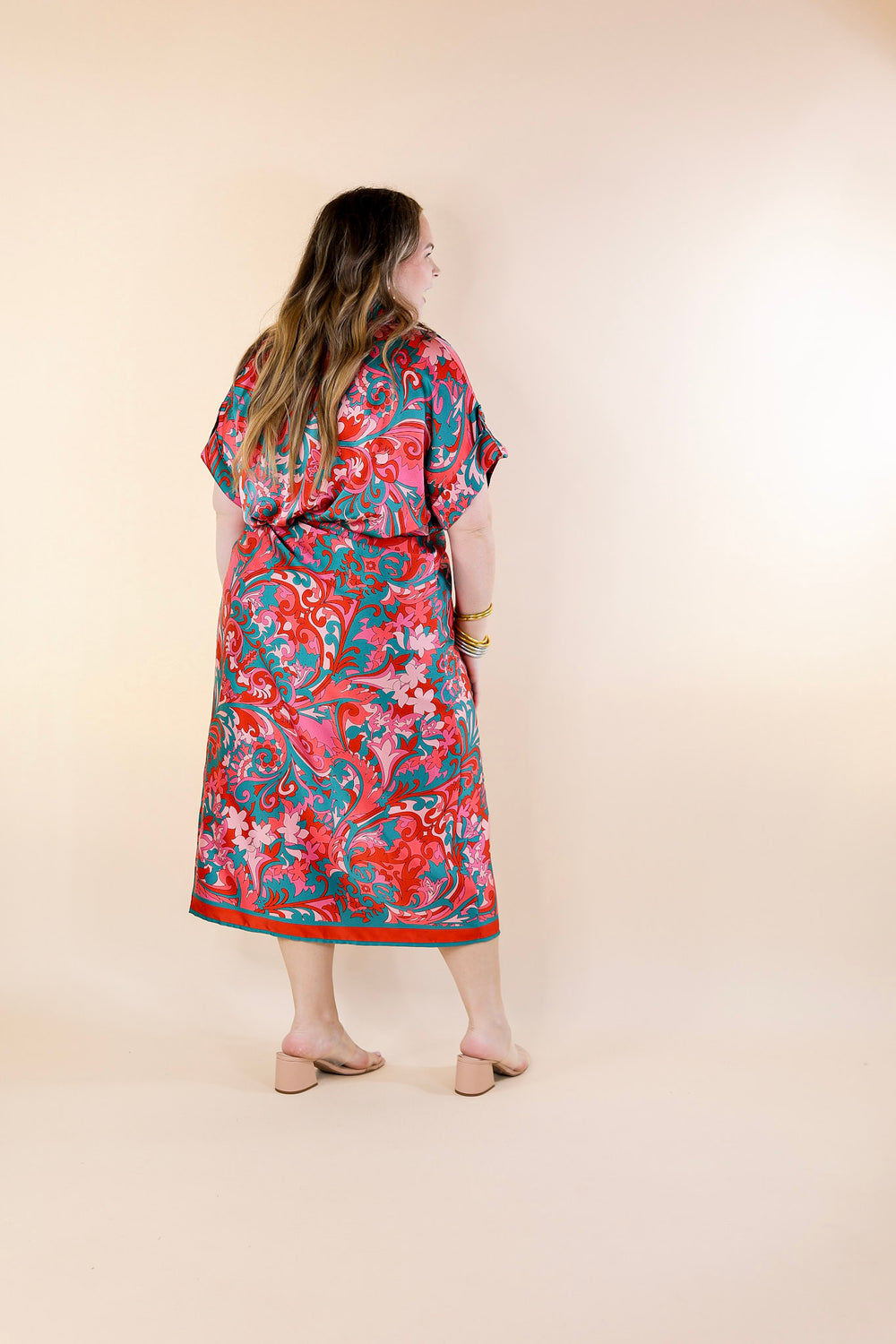 Whispers of Wisteria Paisley Tiered Midi Dress in Pink Mix