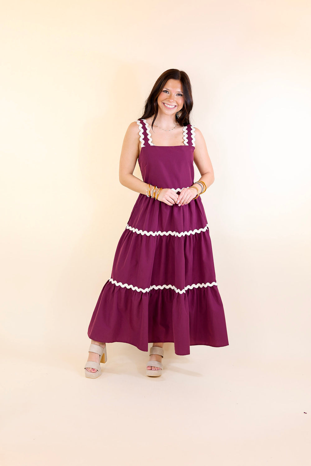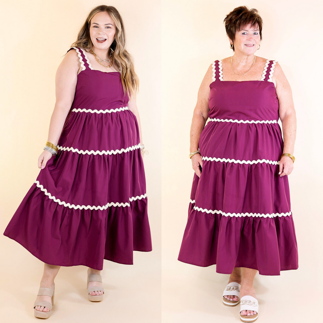 Tulip Fields Floral Tiered Midi Dress in Violet Purple Mix