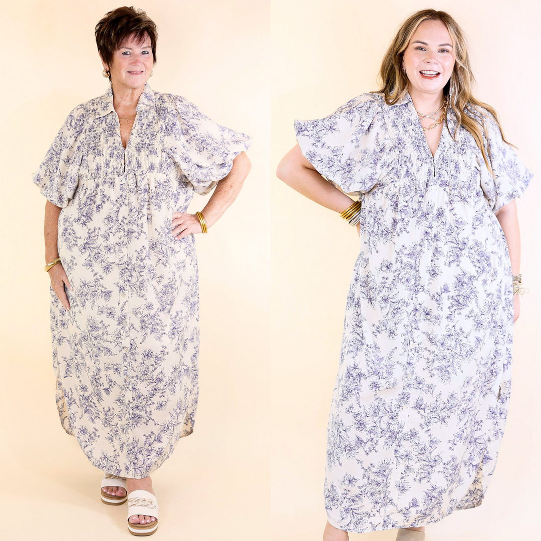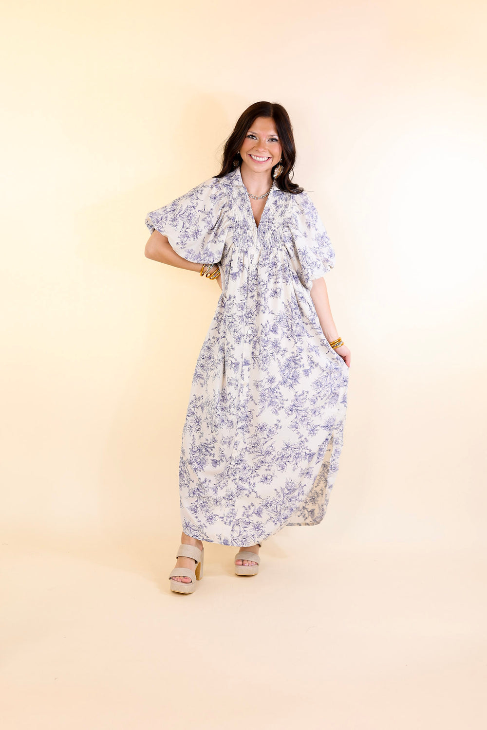 Spring Blooms Smocked Floral Maxi Dress in Blue