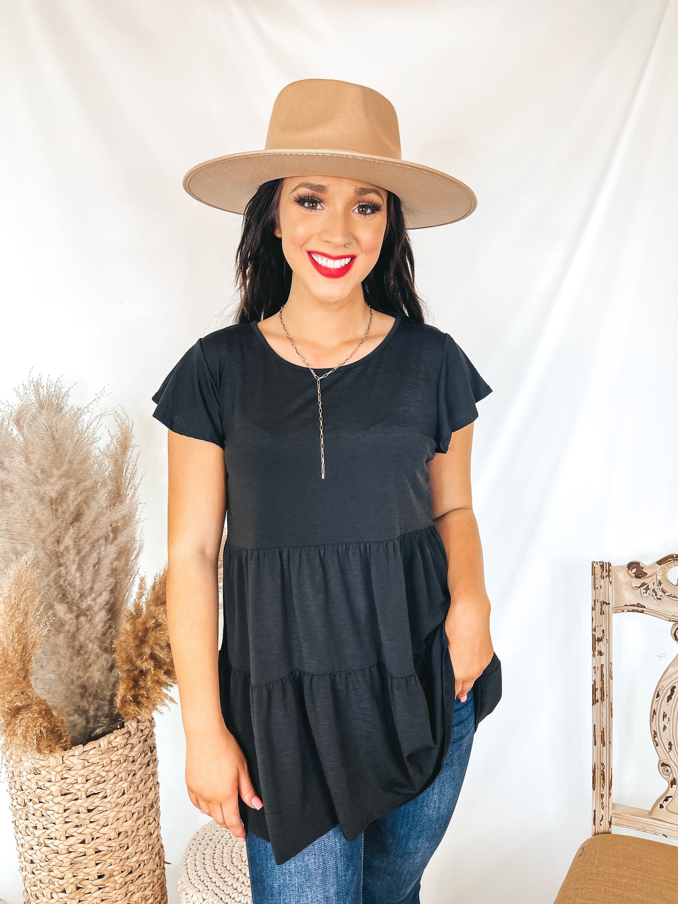 Treat it Right Three Tiered Bulgari Babydoll Top with Ruffle Cap Sleeves in Black - Giddy Up Glamour Boutique
